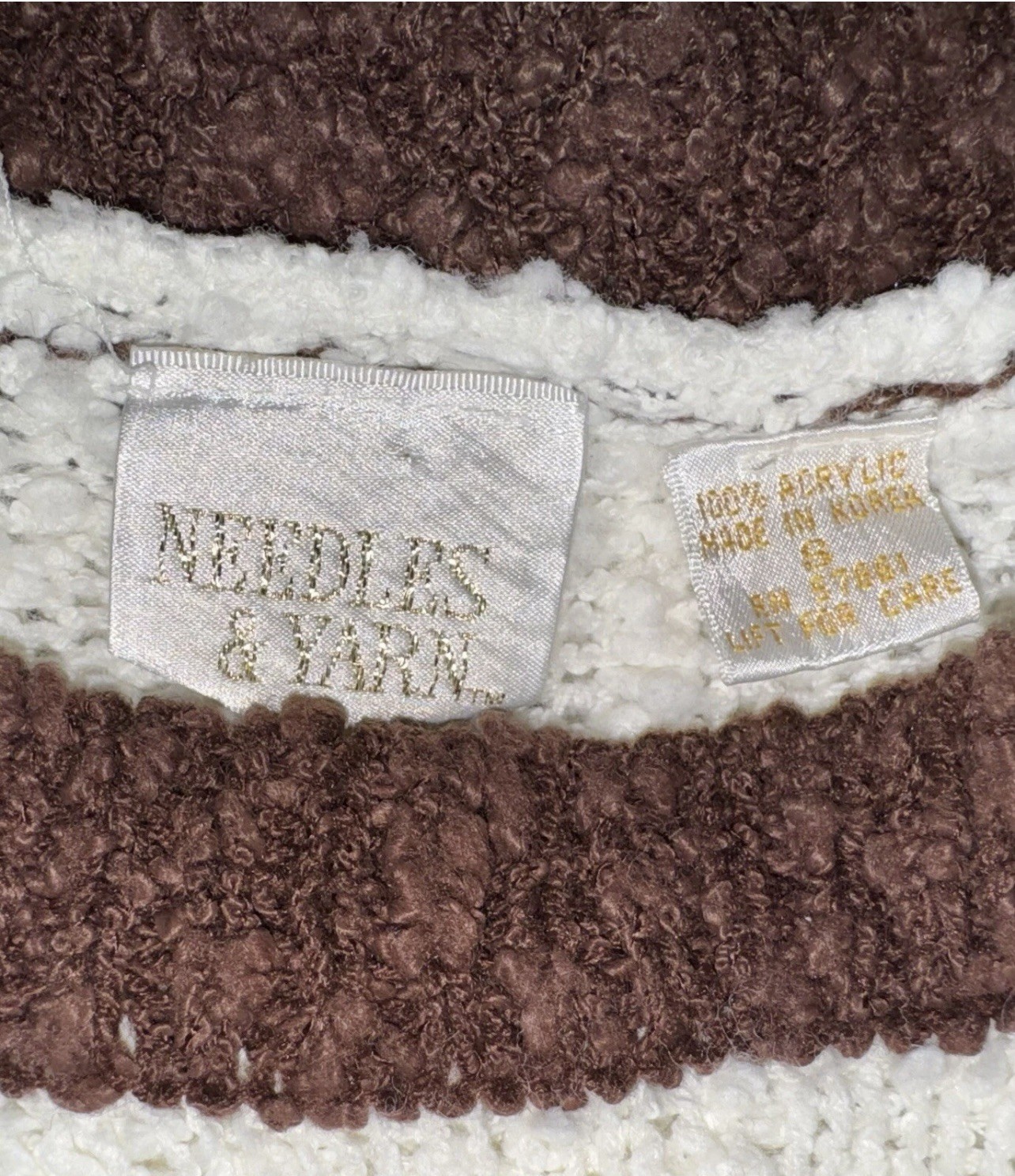 как выглядит Vintage 80s/Y2K Embroidered Sweater w/Swirls of Brown,Cream/pink floral Sz S фото