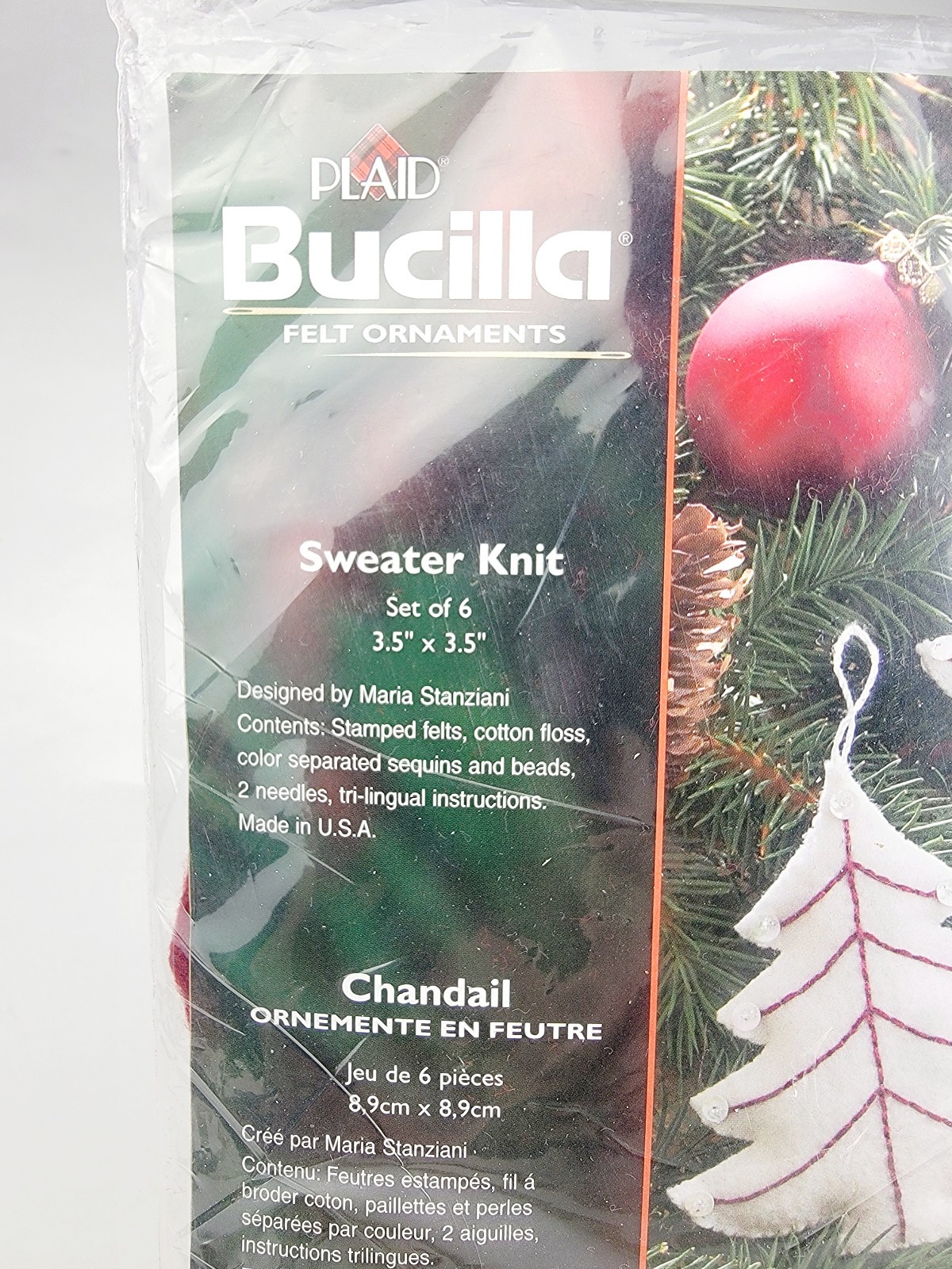 2006 Bucilla SWEATER KNIT Felt Christmas Ornaments Kit 85337 Makes 6 Deer Tree S