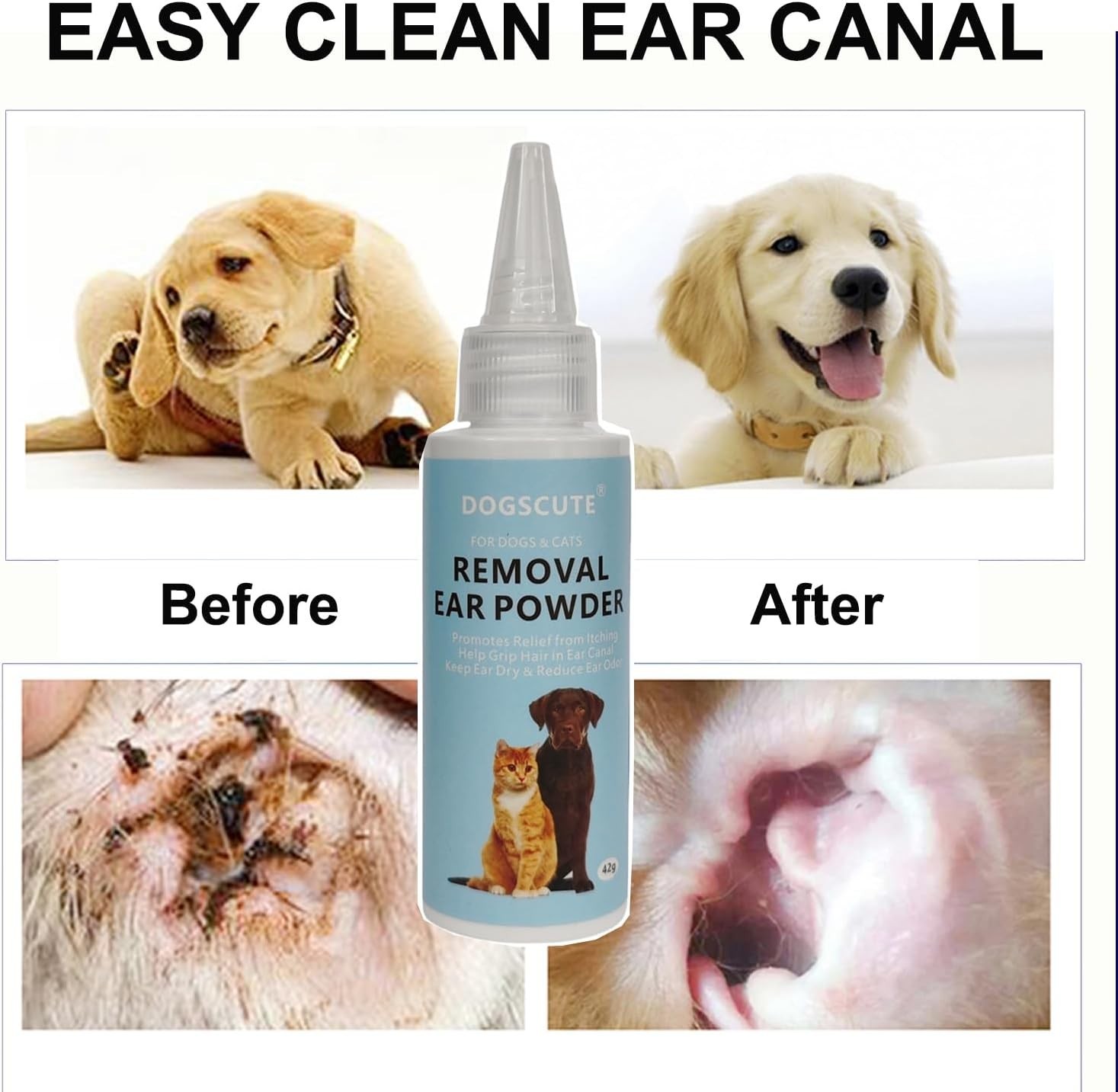 Dog Ear Cleaner, 2 Pack Powder for Hair Removal, White
