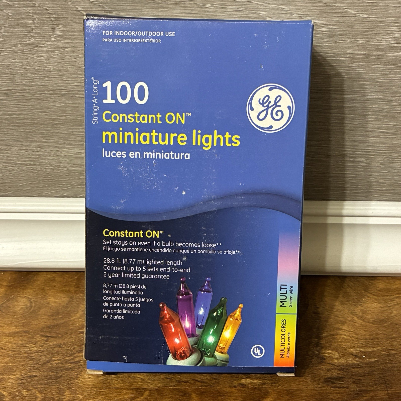 GE Constant On Miniature Lights String A Long 100 Christmas Multicolor New NOS