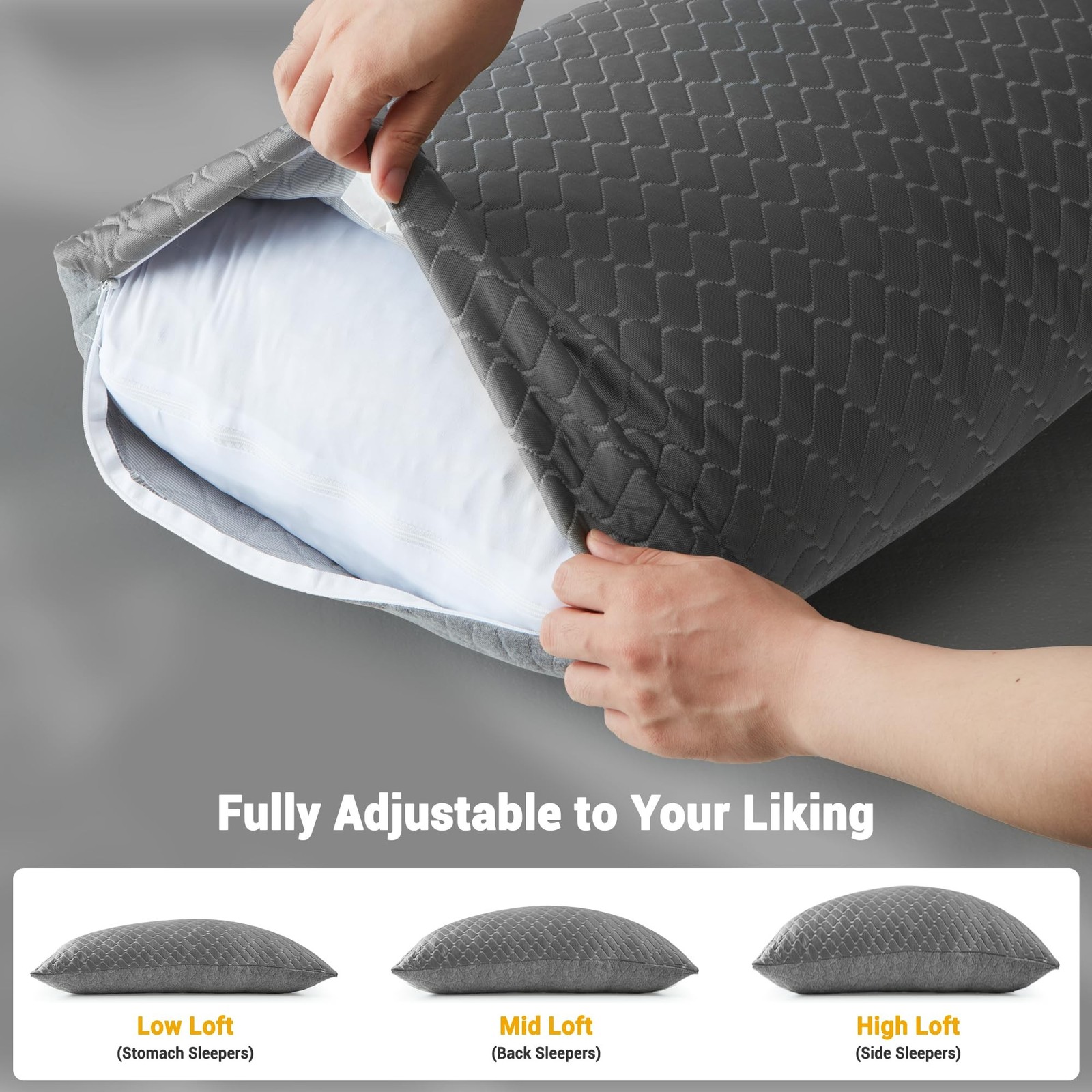 WOLKI Cooling Queen Size Pillows Set of 2 Grey Shredded Memory Foam Pillows 2...