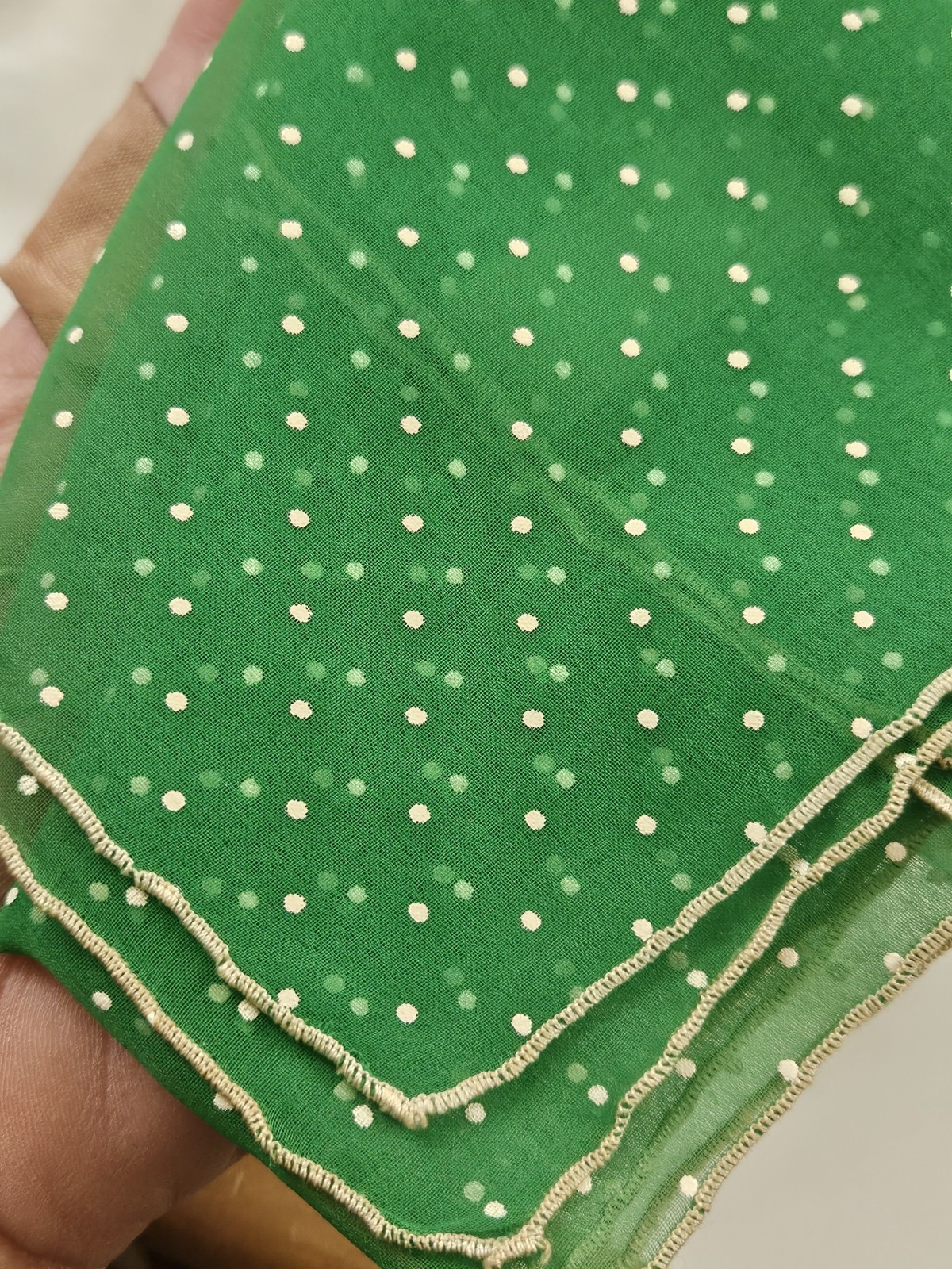 как выглядит Vintage Ray Strauss Scarf Sheer Green Flocked Swiss Dot фото
