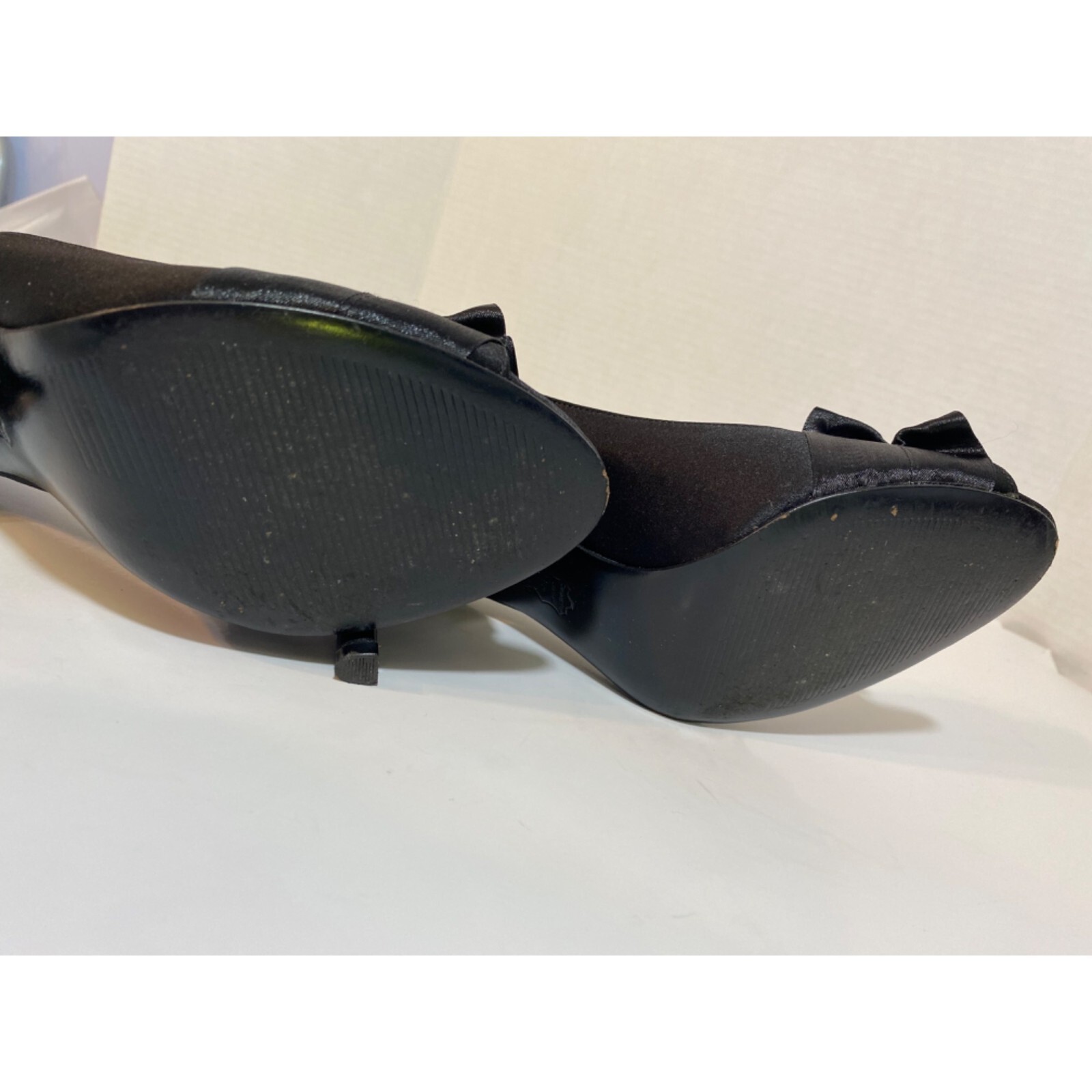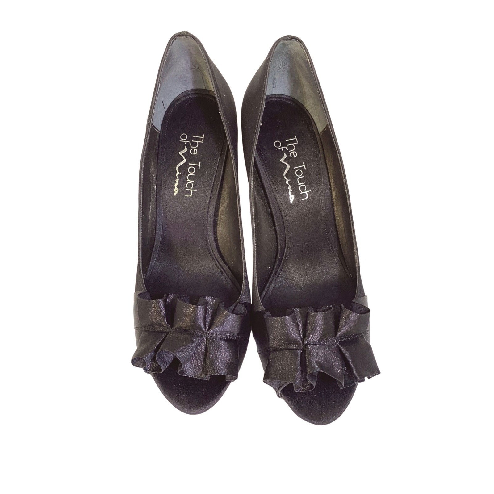 Nina The Touch of Nina Black Peep Toe Satin Pump Heels Ruffle Design Women's 7M