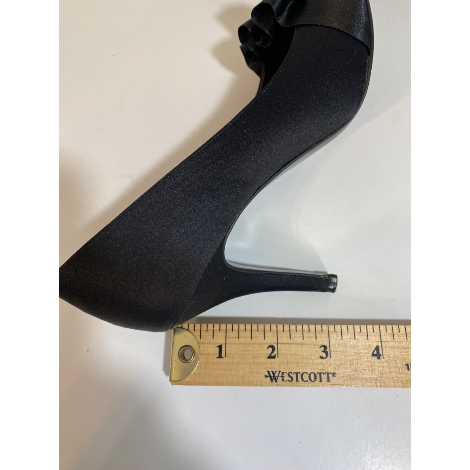 как выглядит Nina The Touch of Nina Black Peep Toe Satin Pump Heels Ruffle Design Womens 7M фото