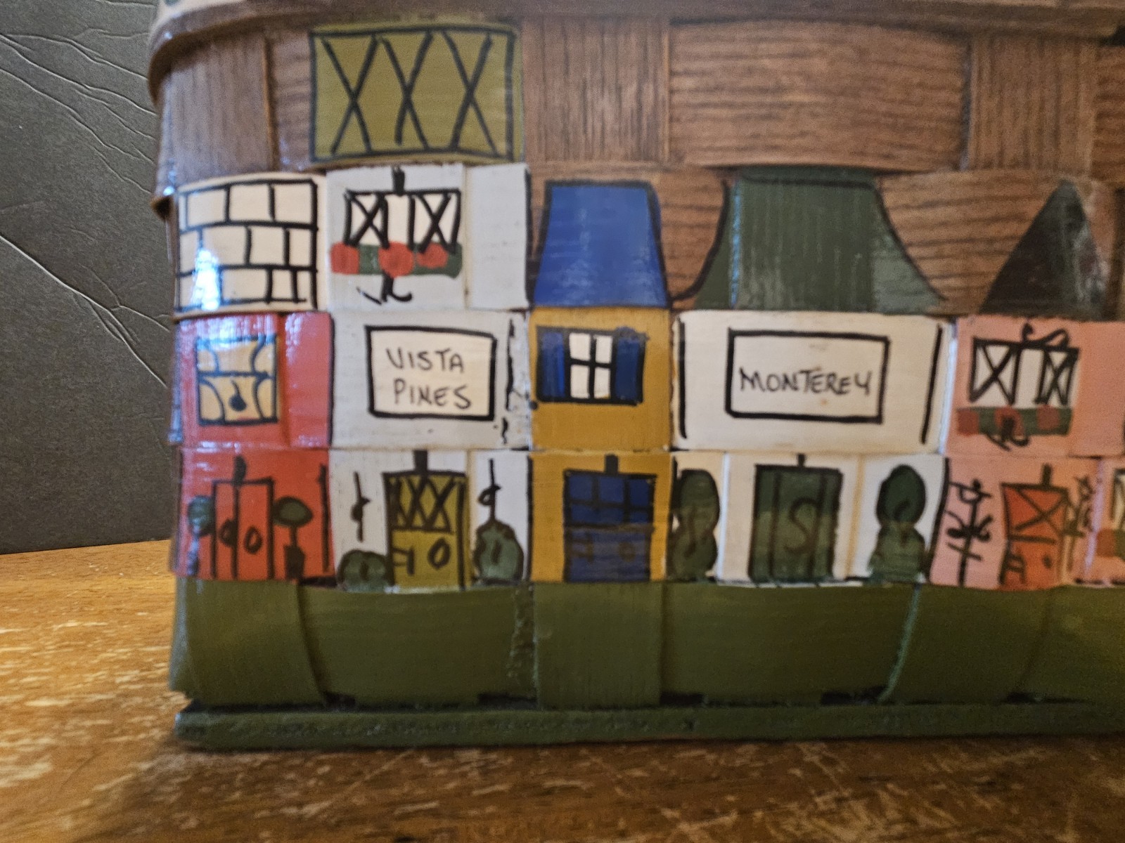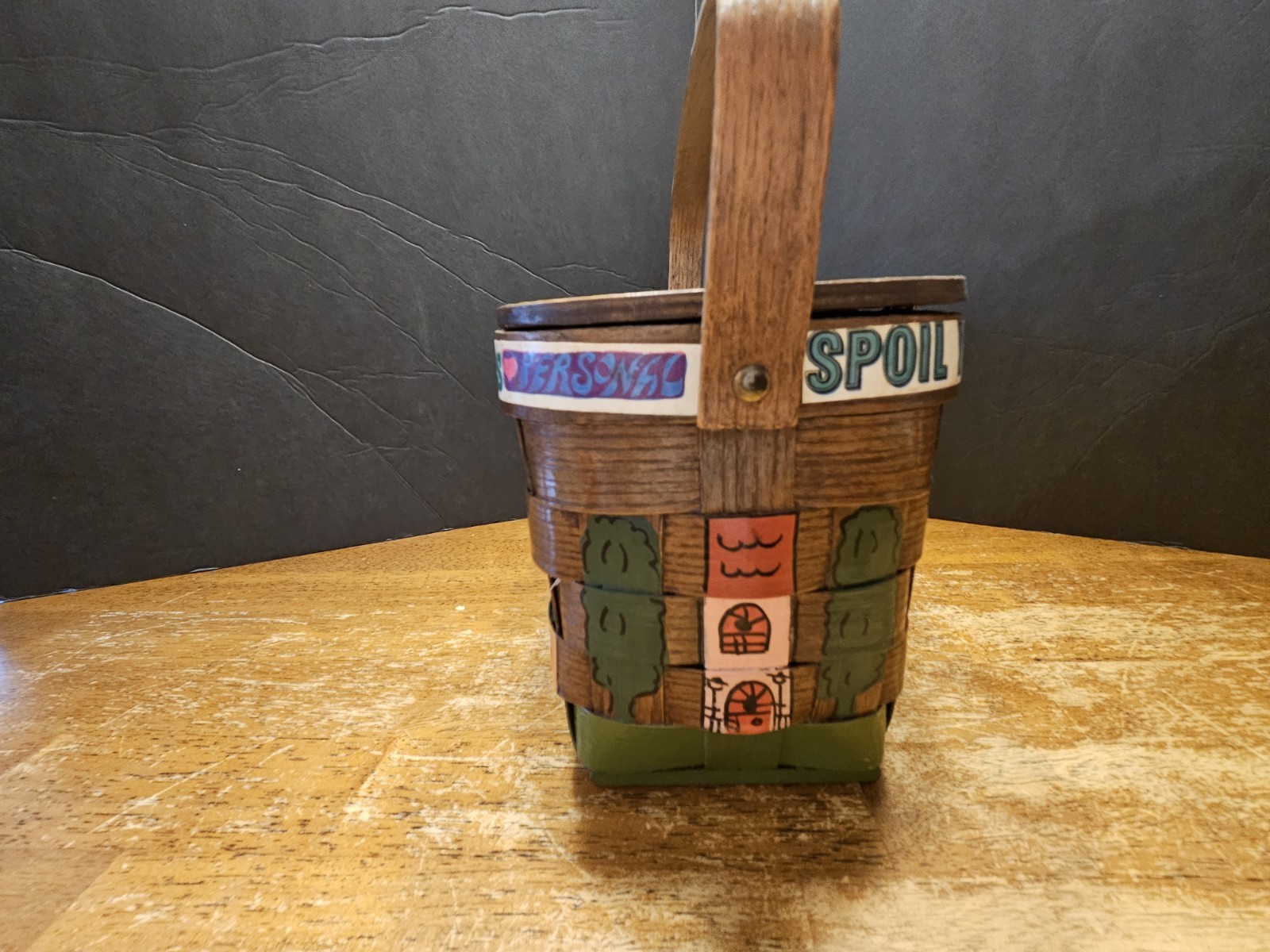 Vintage Signed CARO NAN Basket Purse Wooden Woven Lined Sea Shore Shoppe