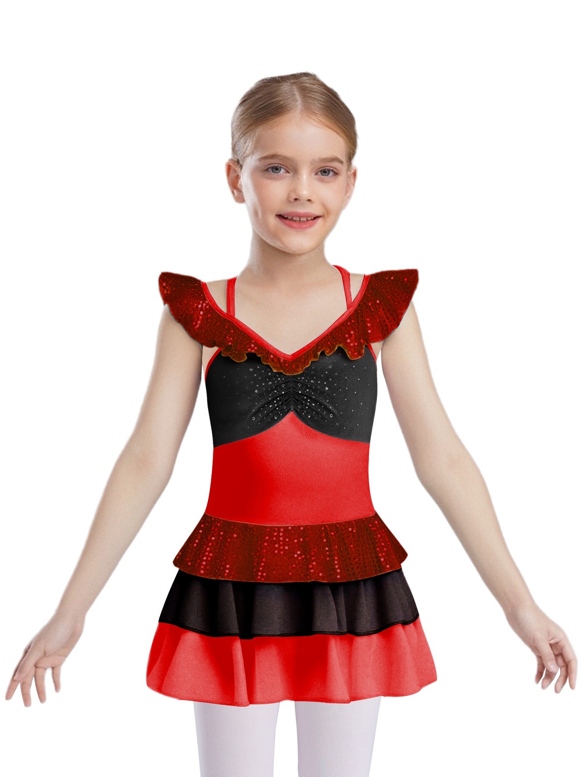 как выглядит Kids Girls Dancewear Front Costume Sequins Dress Competition Dance Rhinestones фото