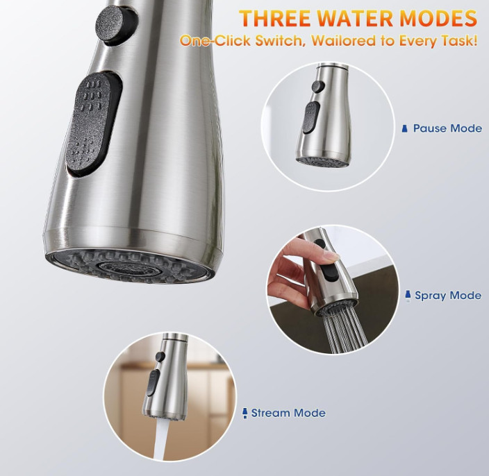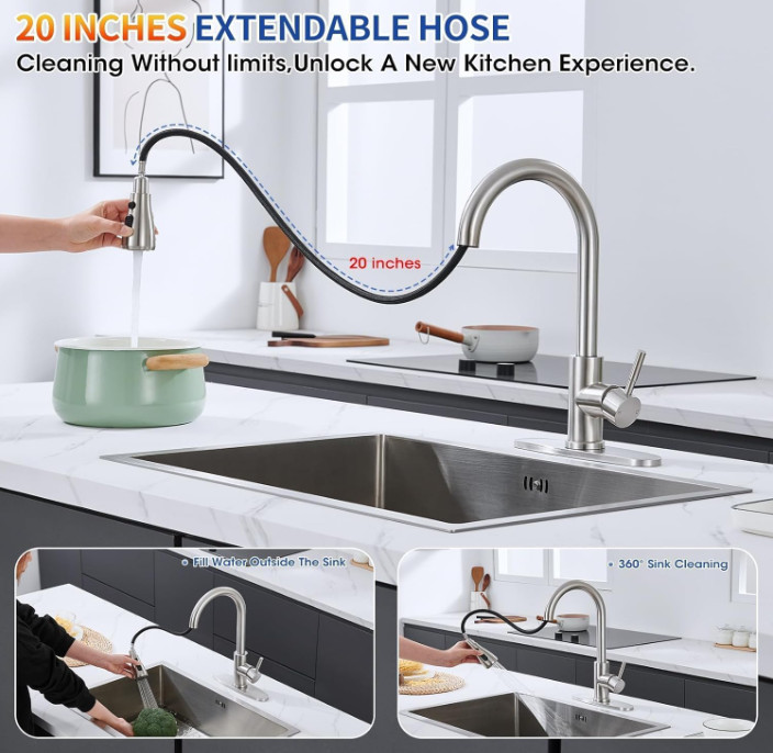 Grifo de cocina con rociador extra ble, arco alto acero inoxidable n quel cepill