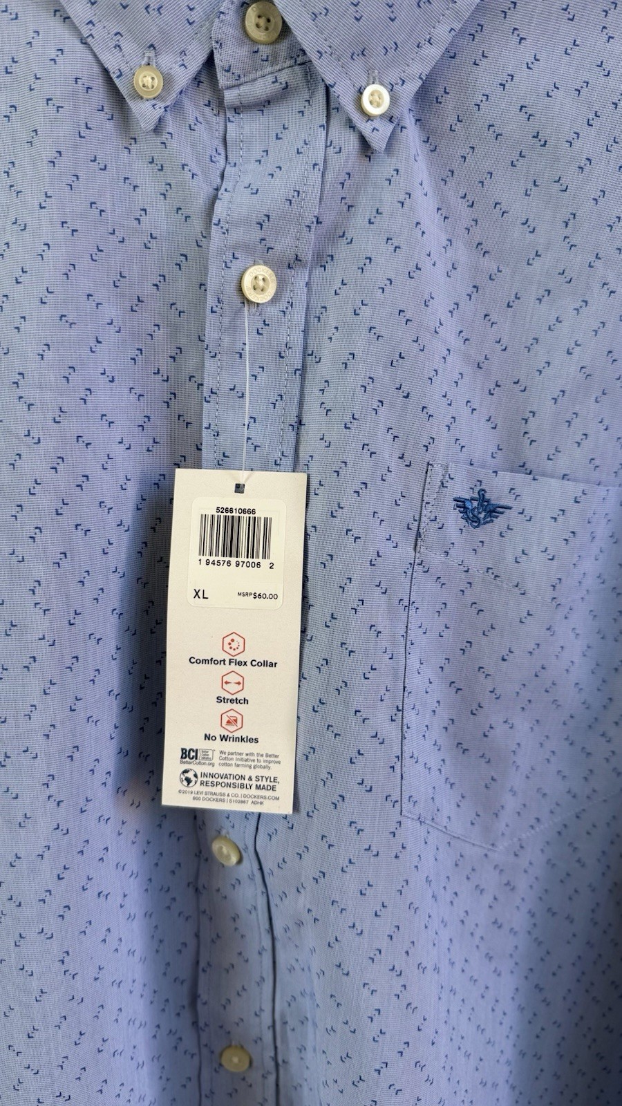как выглядит Dockers Mens Classic Fit Long Sleeve Signature Comfort Flex Shirt XL Blue NWT фото