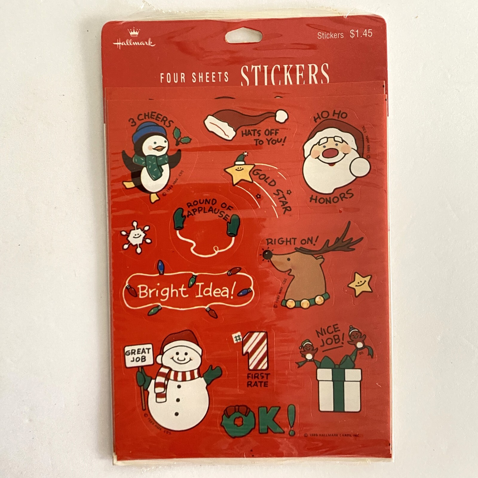 • 2 Hallmark Christmas Stickers Seals Critters and Santa Vintage 80s 1989 Sealed 2