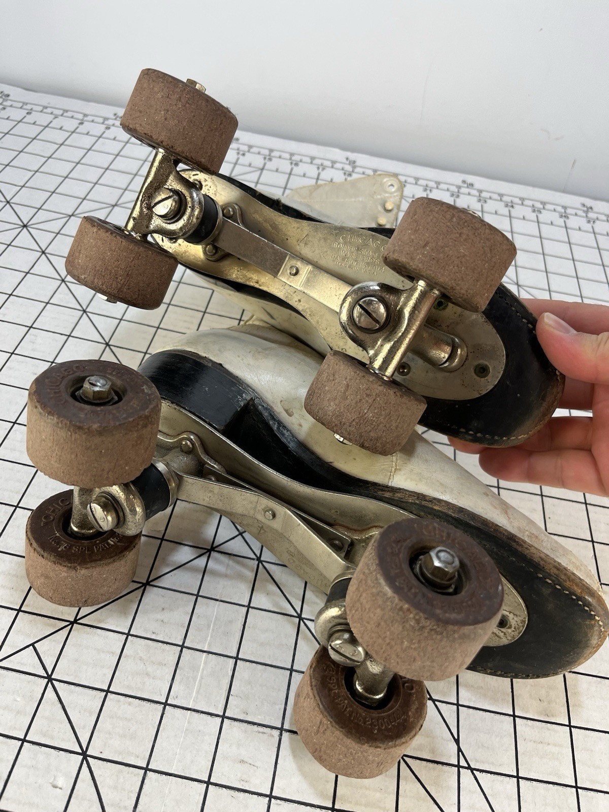 Vintage Chicago Hyde Roller Skates White Leather Size 4 Pat. 1914