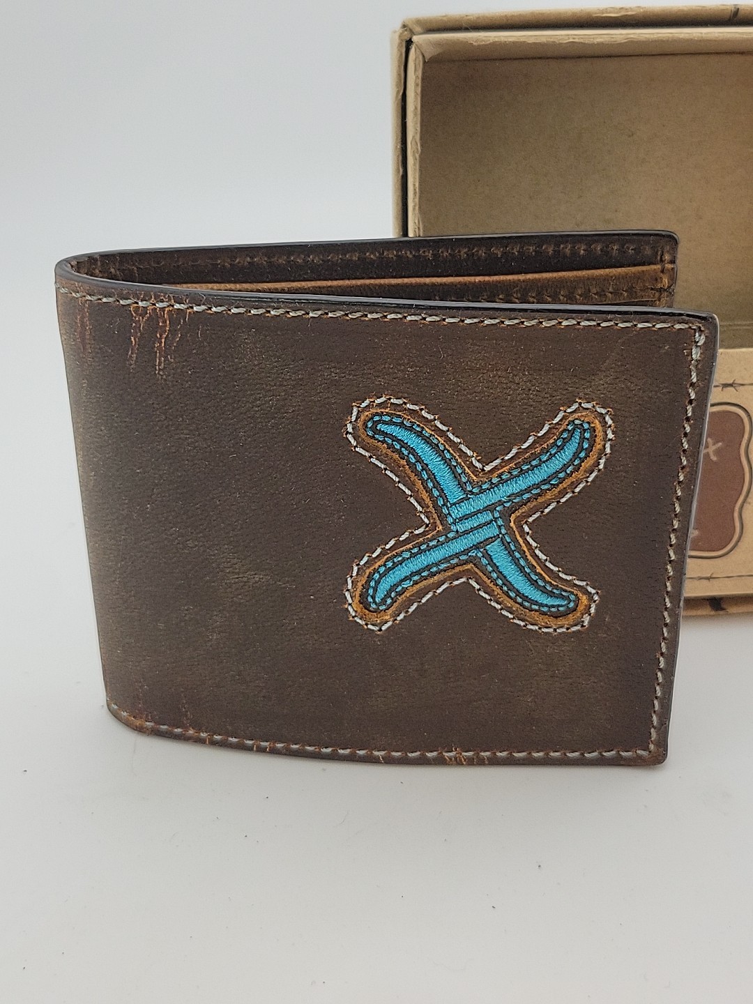 как выглядит TWISTED X Bifold Mens Western Wallet GENUINE LEATHER Distressed Embroidered X фото