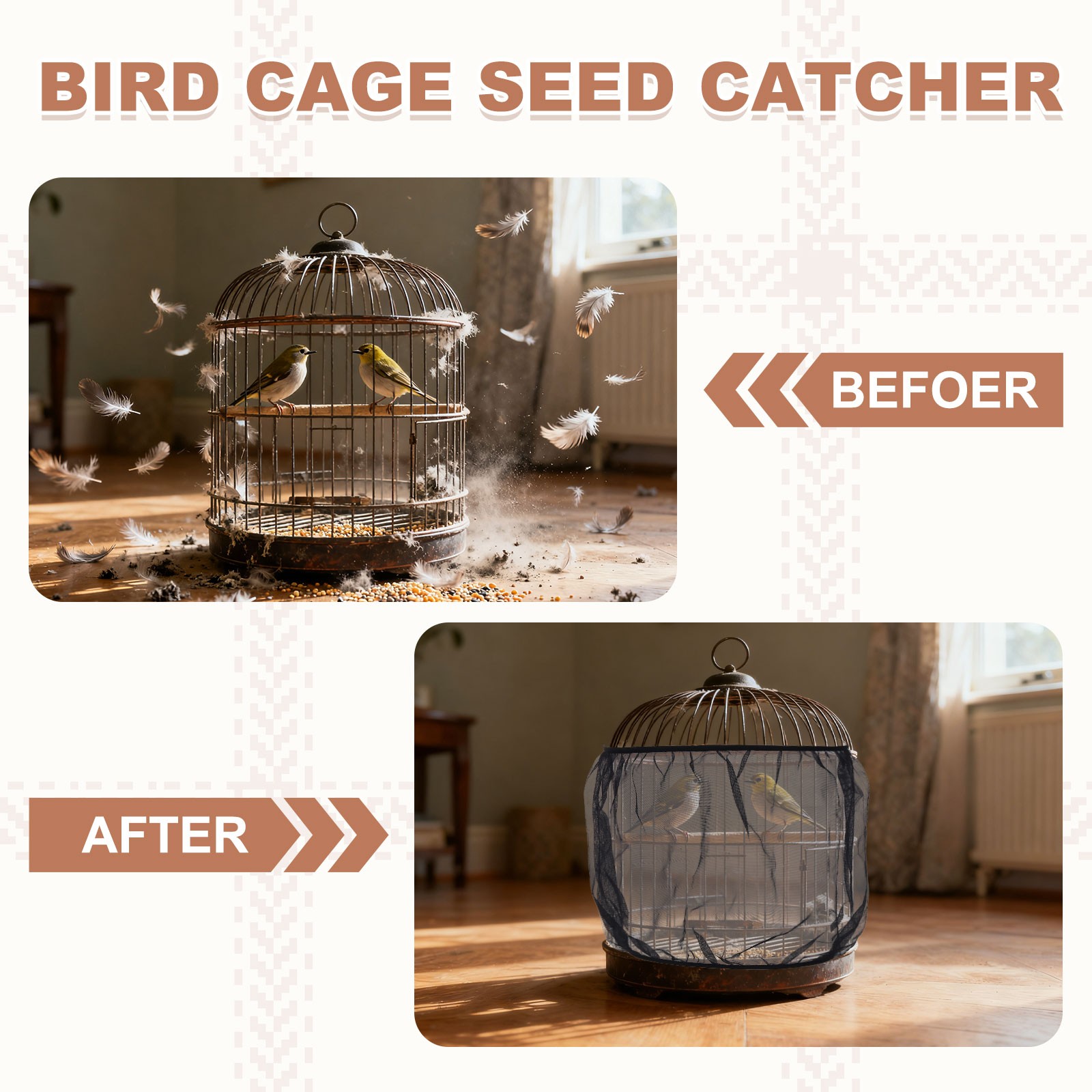 Bird Cage Seed Catcher, 8 Inch Bird Cage Net Cover, Black, S