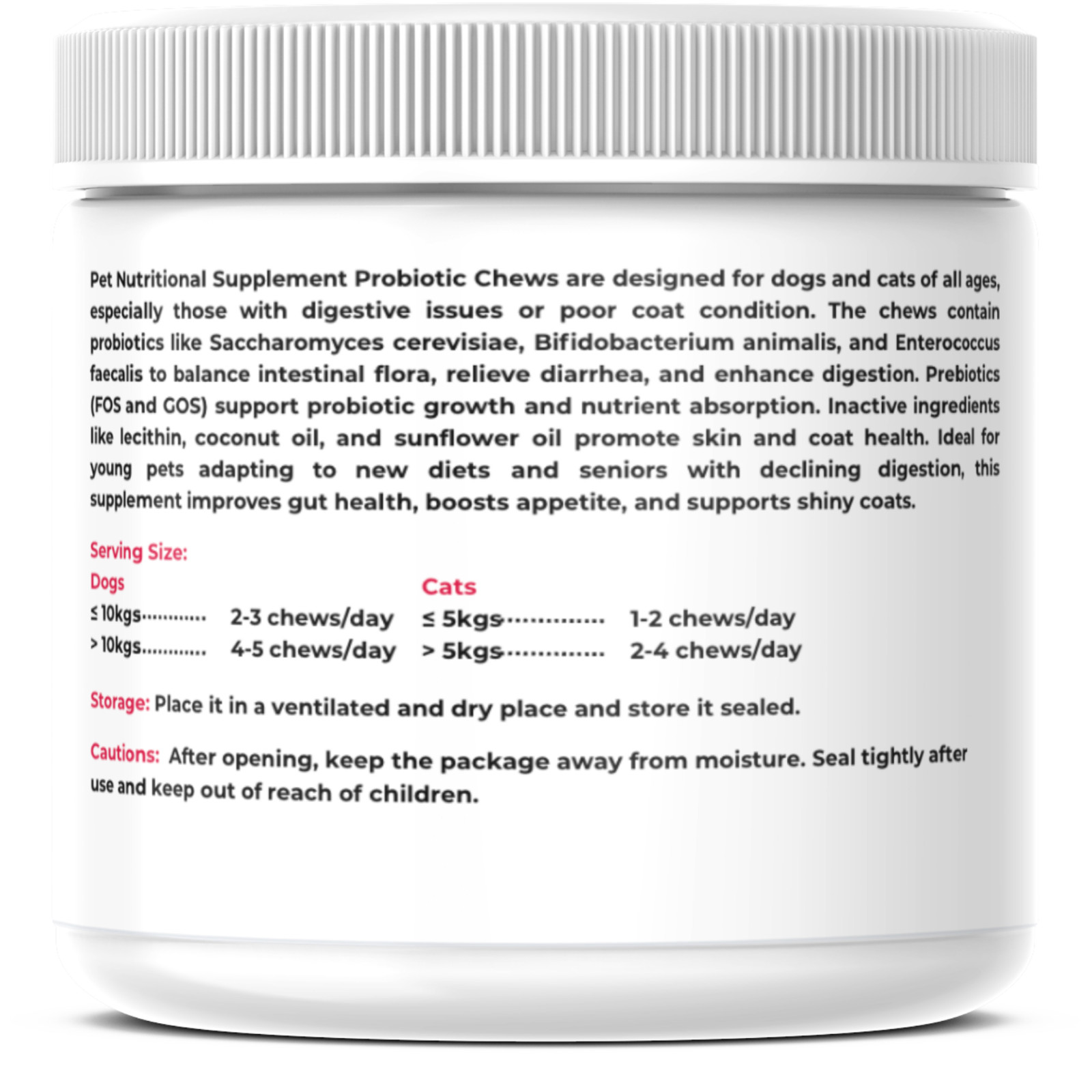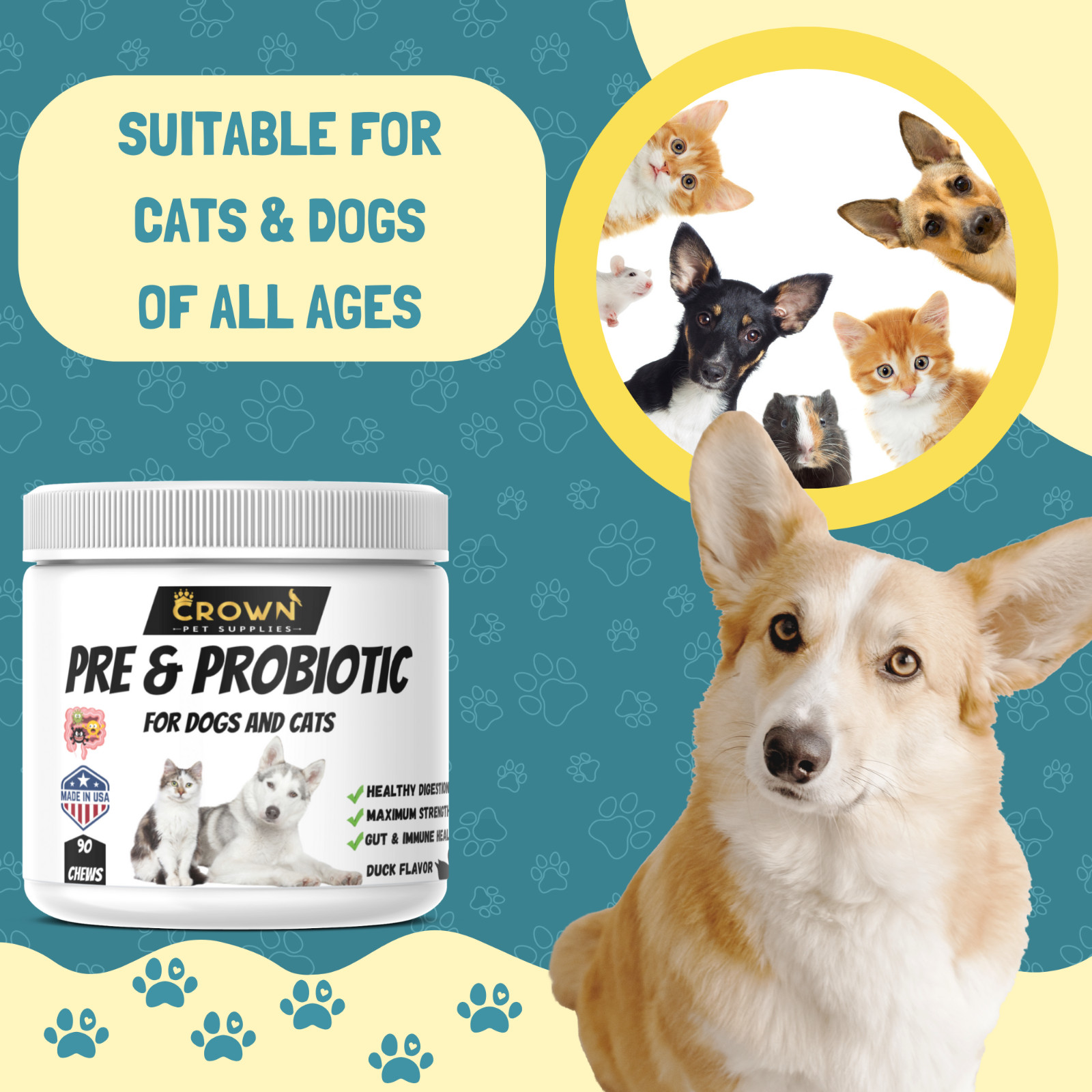 Pre-Probiotic Chews for Dogs Cats Advanced Gut, Digestive, Skin Coat Support