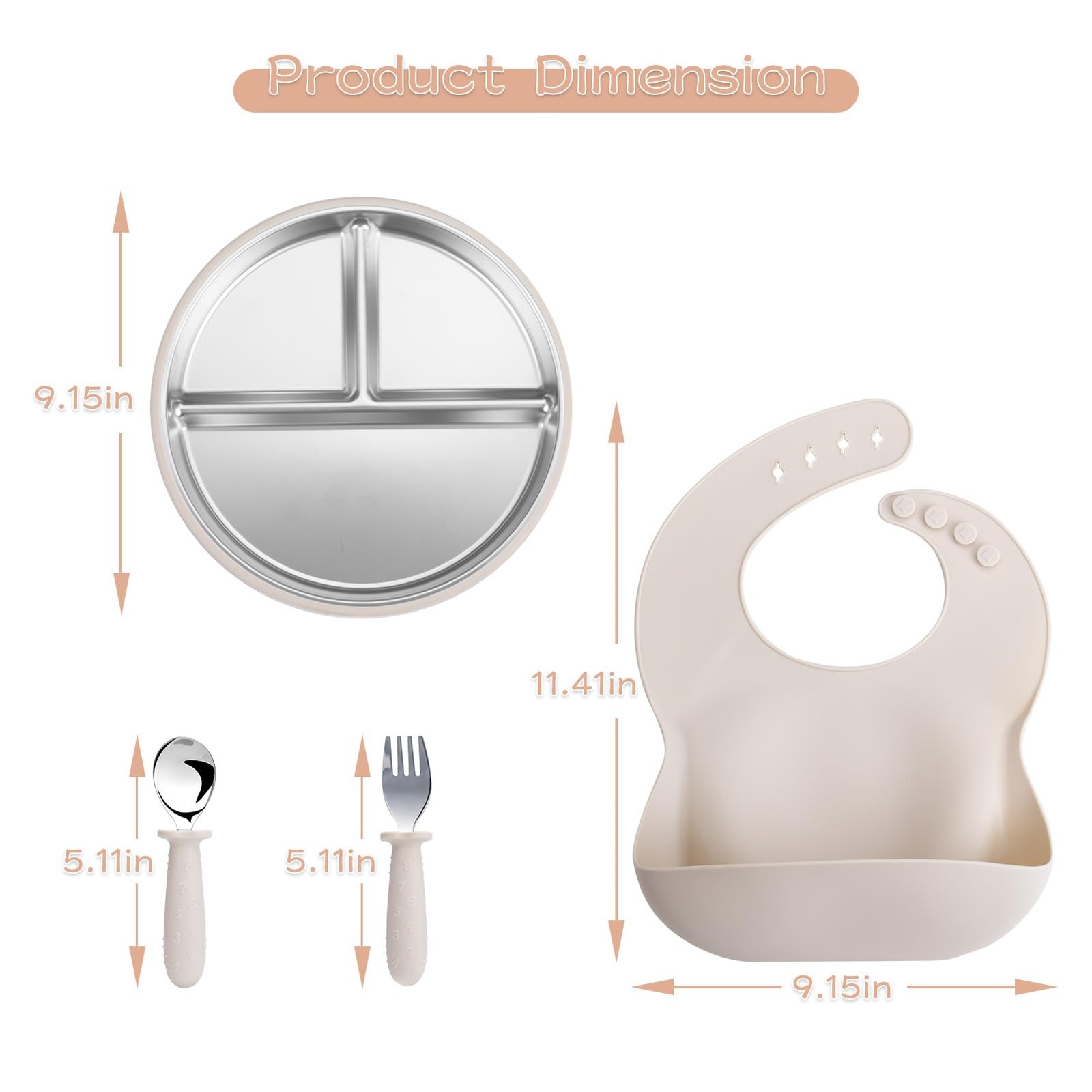как выглядит Safe Stainless Steel 4-Piece Kids Tableware Set 304 Grade with Suction Base фото