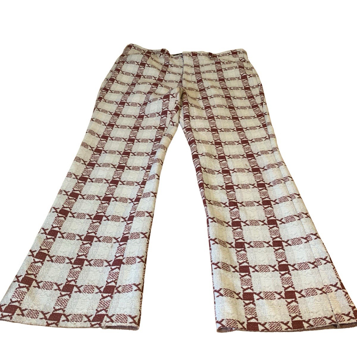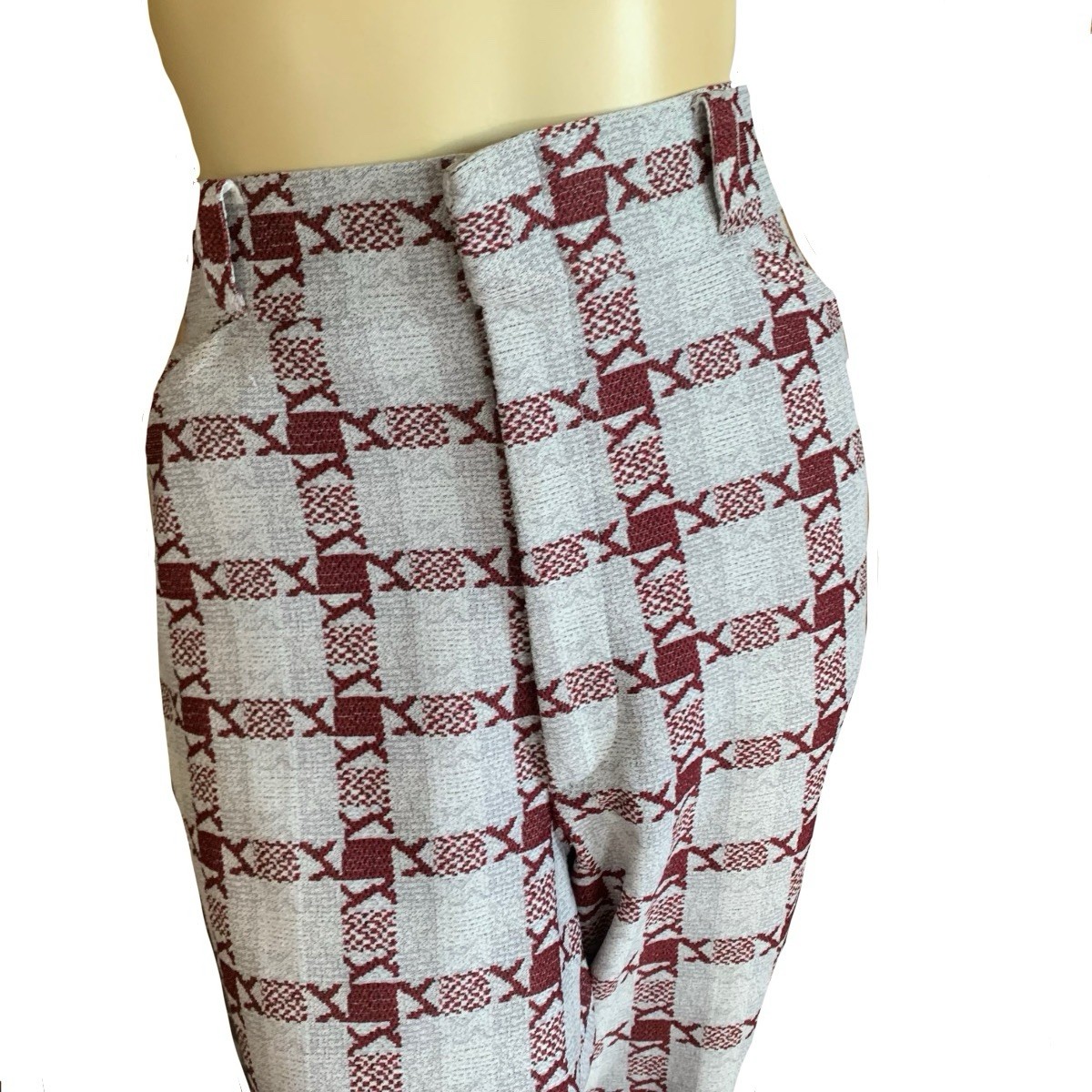 как выглядит WOMENS VINTAGE 1980S GRAY BURGUNDY BOOT CUT PLAID PANTS SIZE XL фото