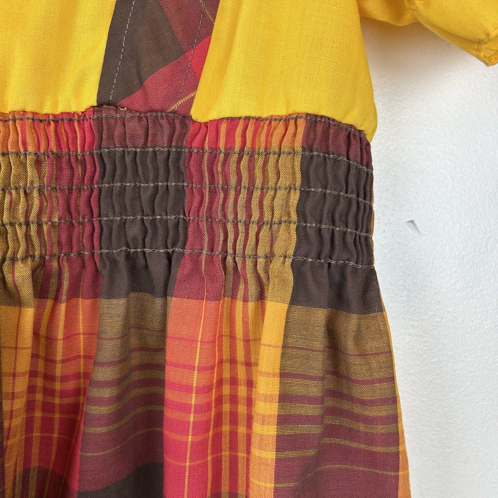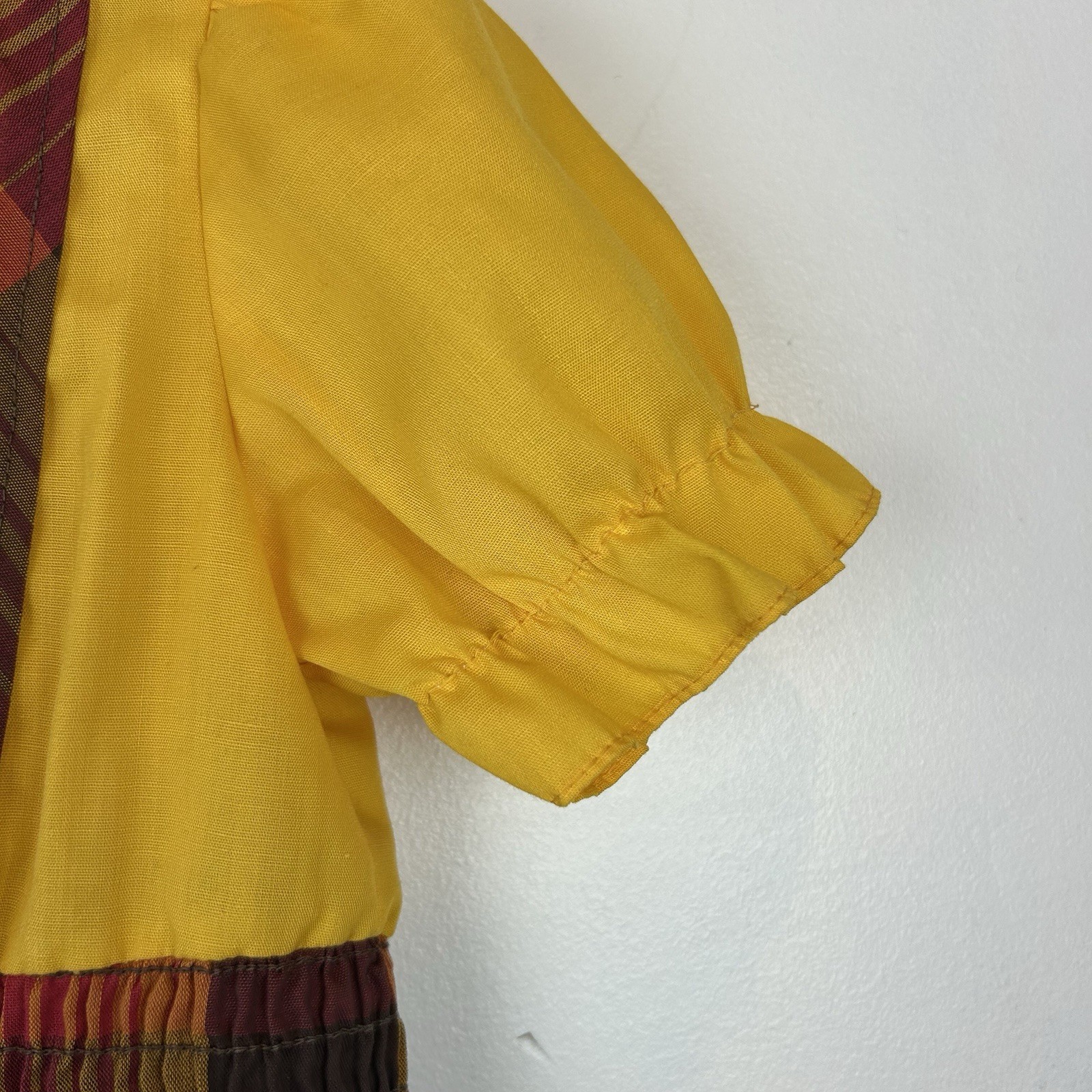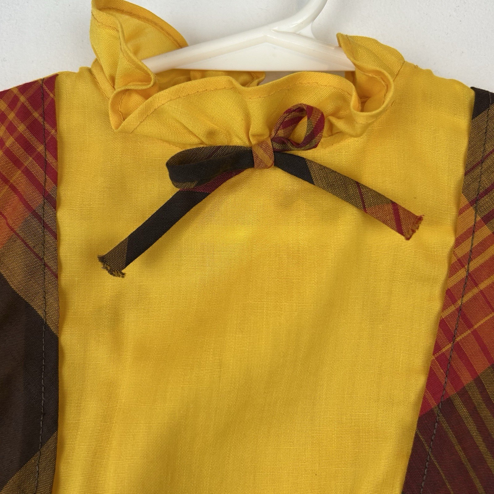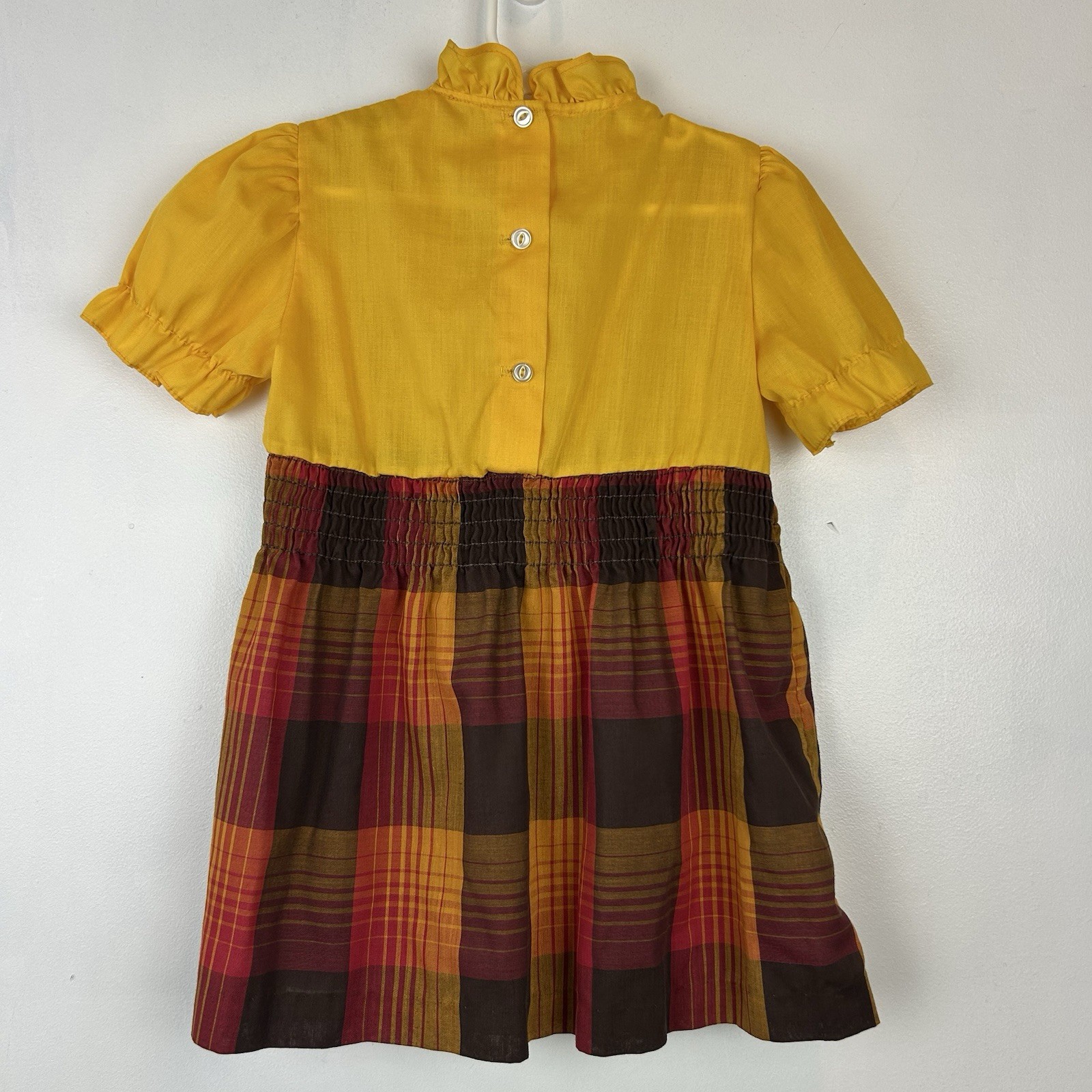 Vintage Dress Toddler Girls 70s Bright Yellow Brown Plaid Jumper Look Read