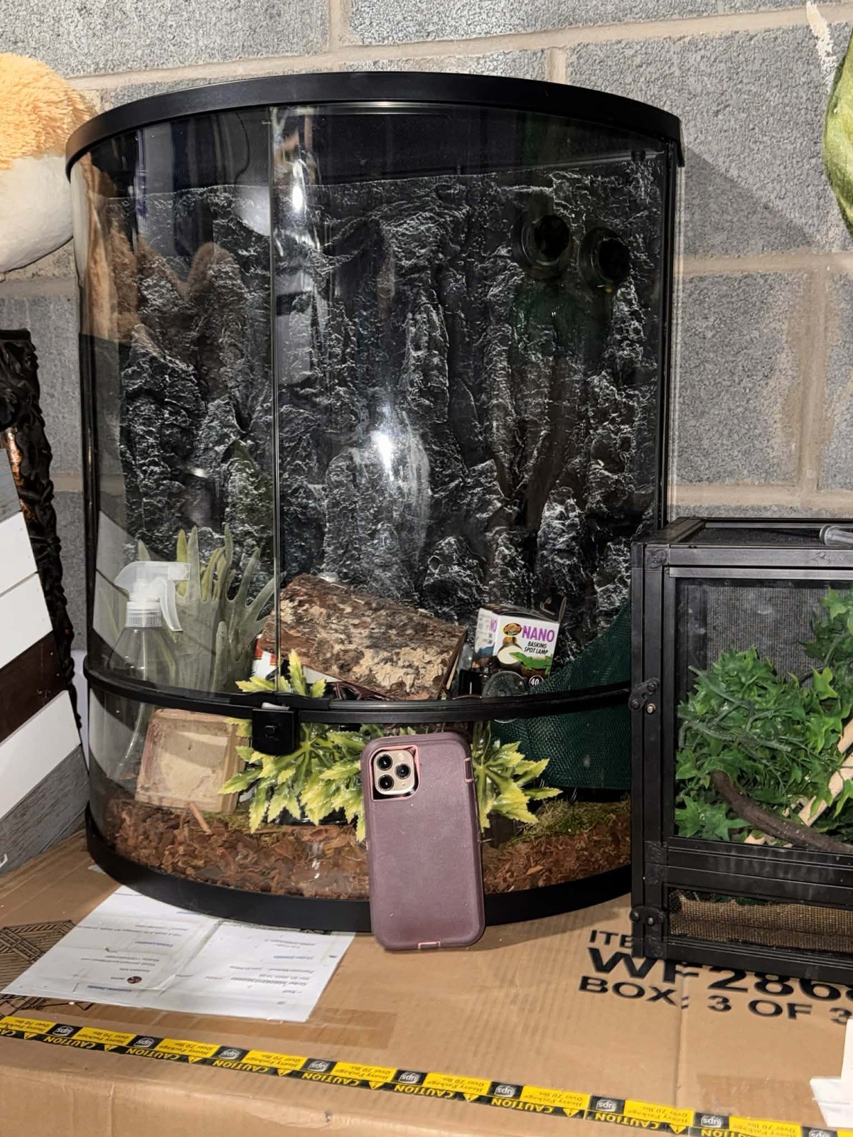 Chameleon Terrarium COMPLETE Starter Kit Pre-Owned Vivarium Heat Lamp 550 Val
