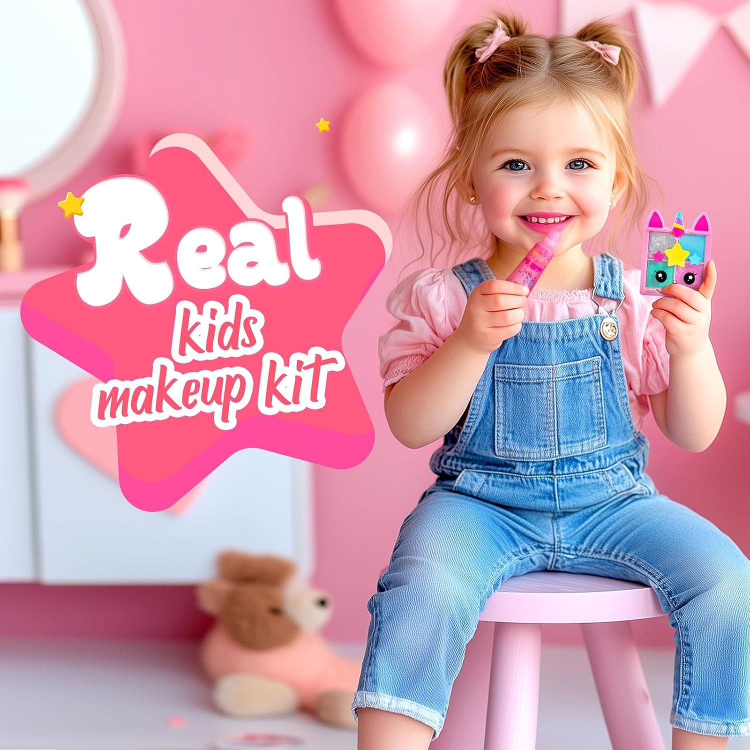 Kids Real Makeup Kit for Little Girls - Real, Non Toxic, Washable Make up Toy -