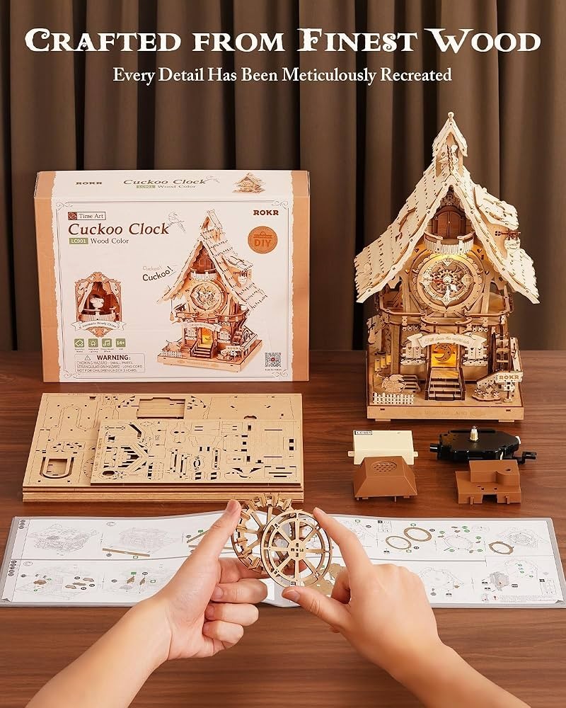как выглядит ROKR LC901 Cuckoo Clock, Natural Wood, Mechanical 3D Wooden Puzzle фото