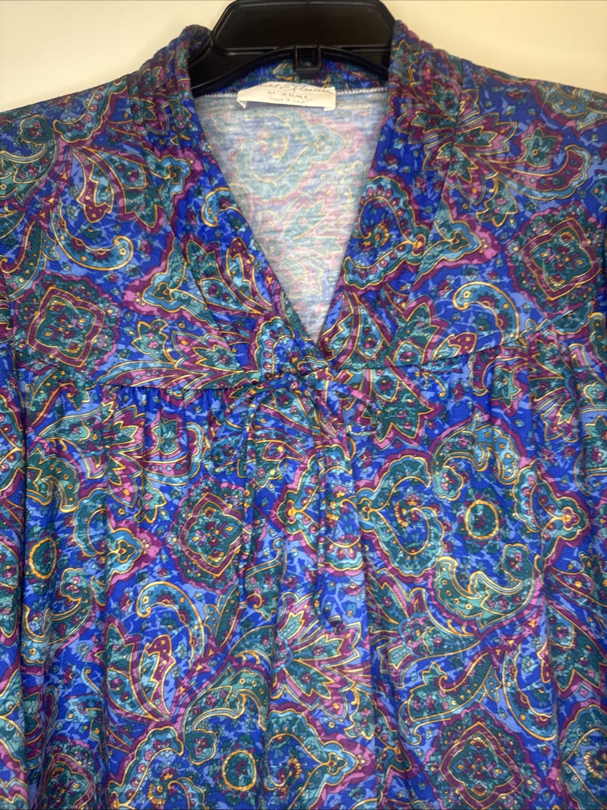 как выглядит VTG Miss Elaine At Home Colorful 3/4 Sleeve V-Neck Snap Front Robe Pockets Sz S фото