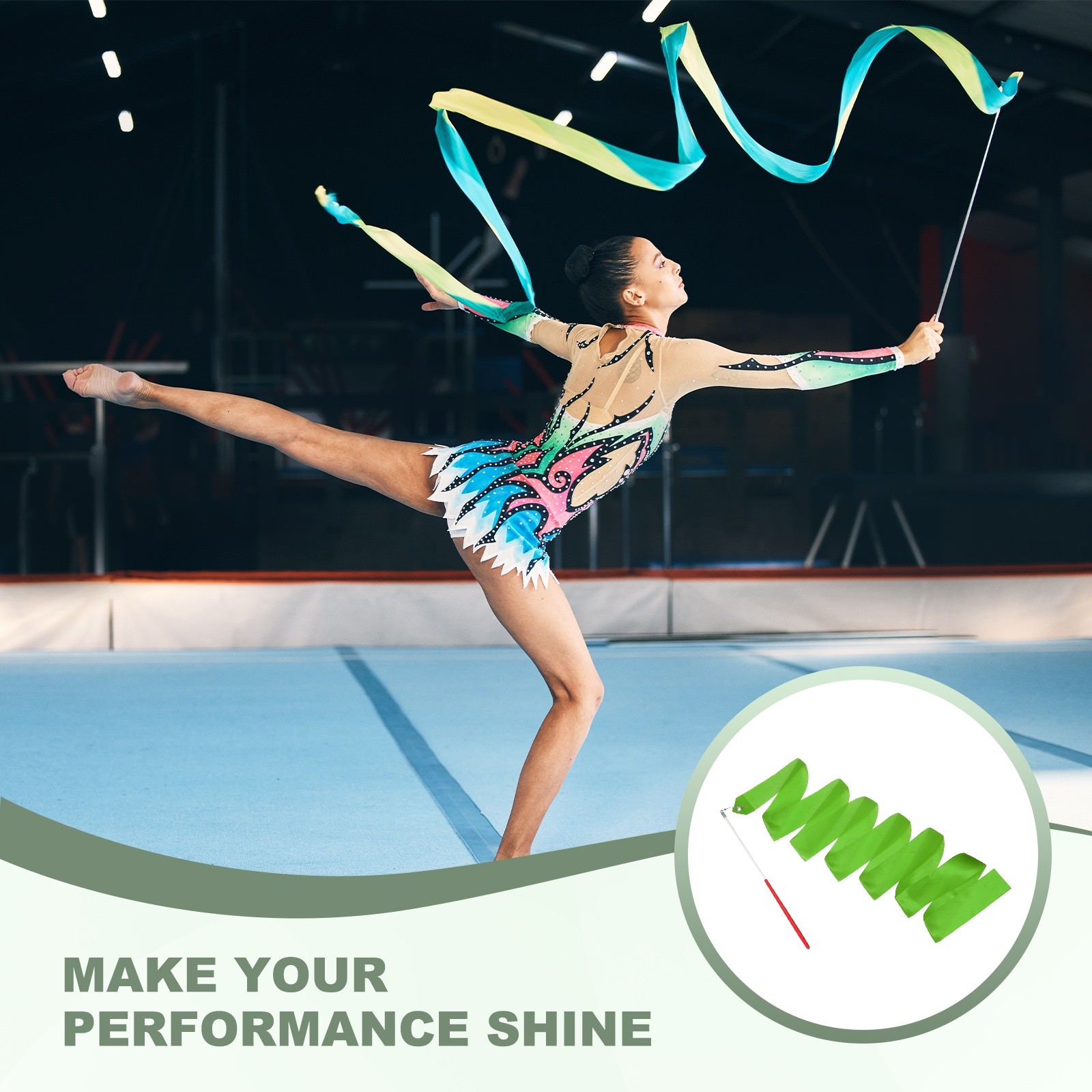 как выглядит 2 Pcs Dance Ribbons 78.7" Gymnastics Ribbon Streamers Red Wand, Dark Green фото