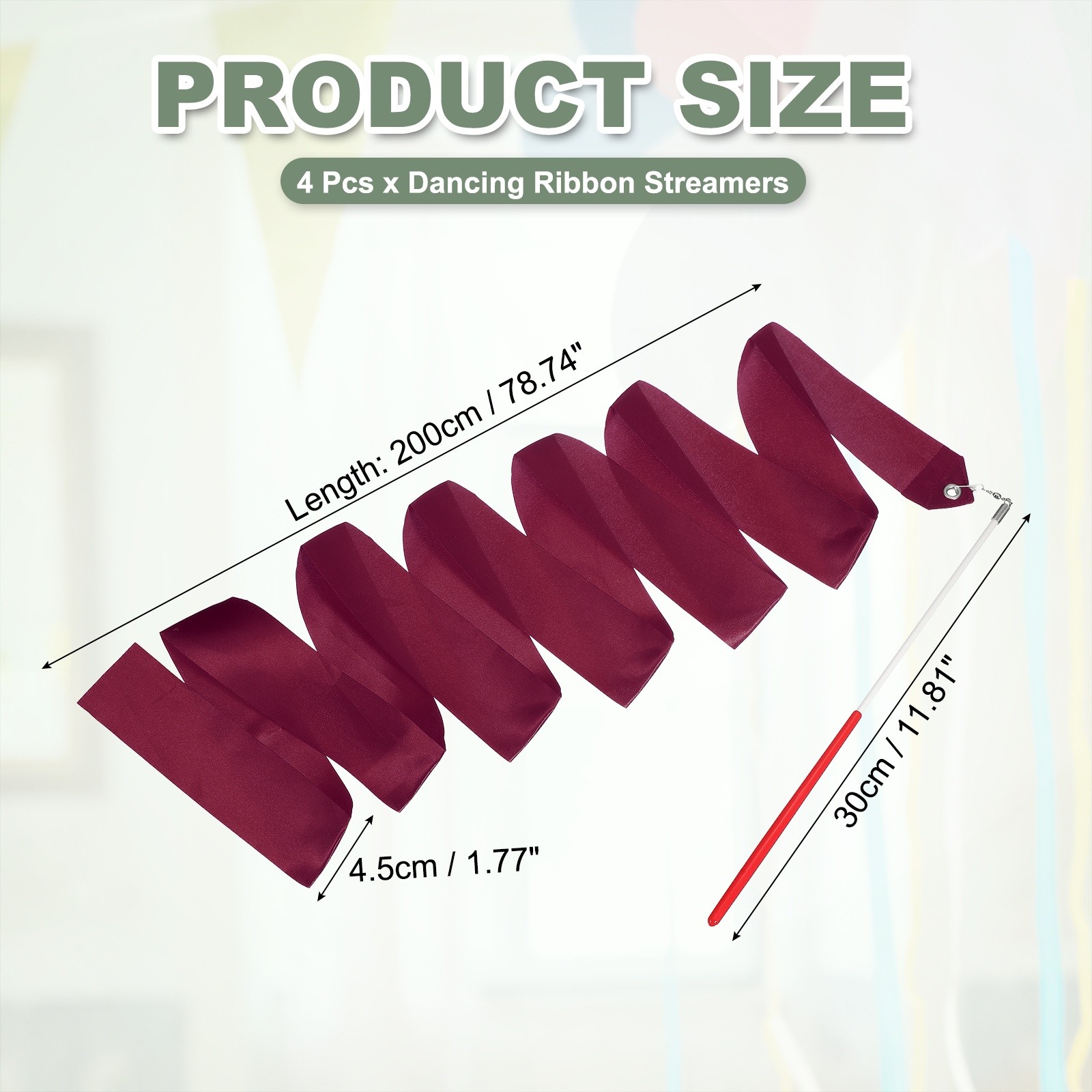 как выглядит 4 Pcs Dance Ribbons 78.7" Gymnastics Ribbon Streamers Red Wand, Burgundy фото
