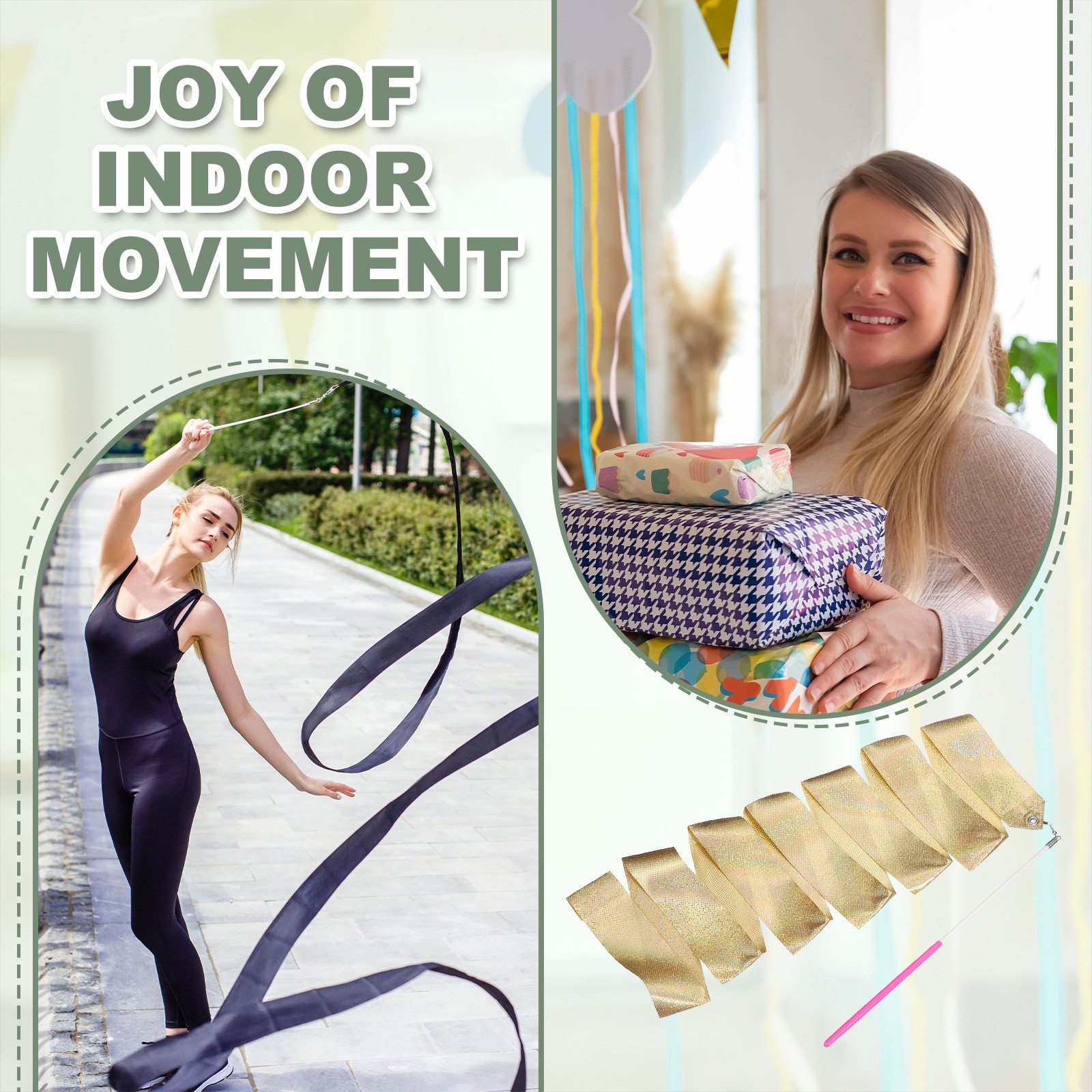 2 Pcs Dance Ribbons 78.7 Sparkly Gymnastics Ribbon Streamers Pink Wand, Gold