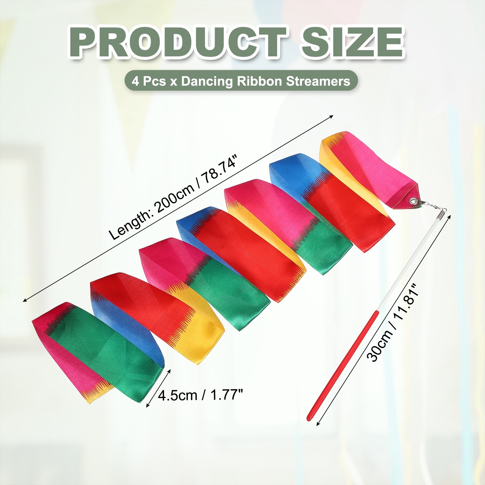 4 Pcs Dance Ribbons 78.7 Gymnastics Ribbon Streamers Red Wand, Flame