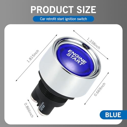 Car Engine Start Ignition Push Switch, 1.8 x 1.3 12V 50A Keyless 1 PC Blue