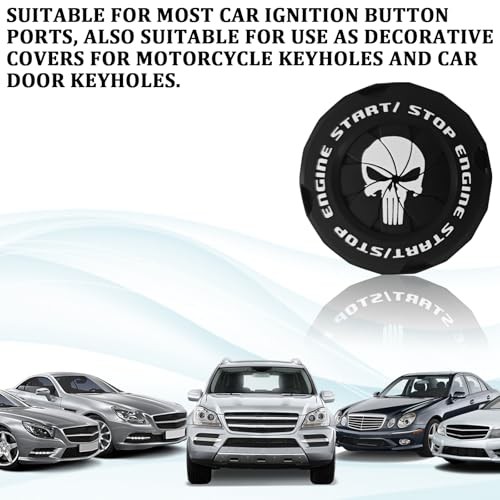 Car Push Start Button Cover Rotary Push to Start Stop Ignition Kit Skull Black