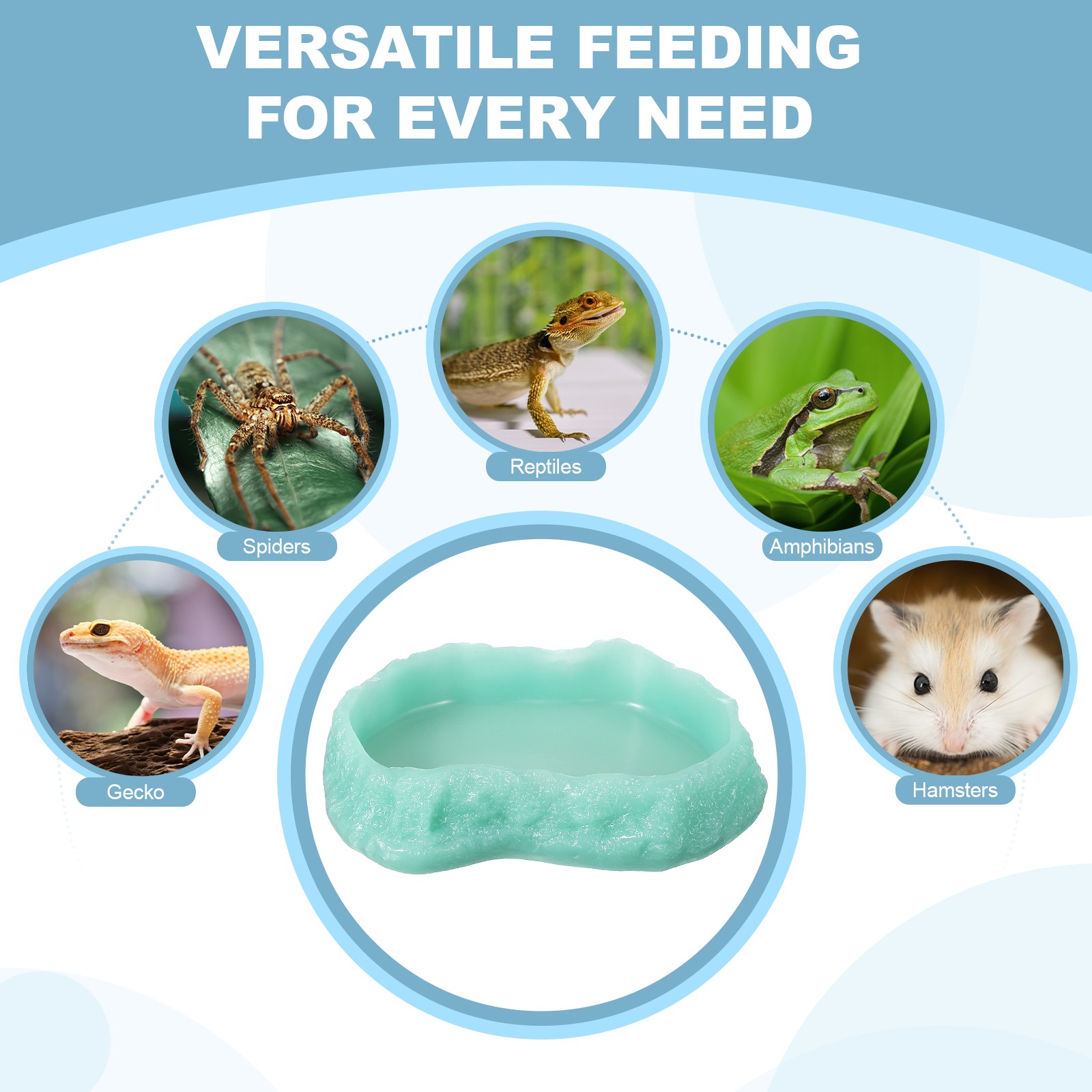 Reptile Food Bowl, Reptile Feeding Dish Corner Bowl m 7.3In, Glow Lake Blue