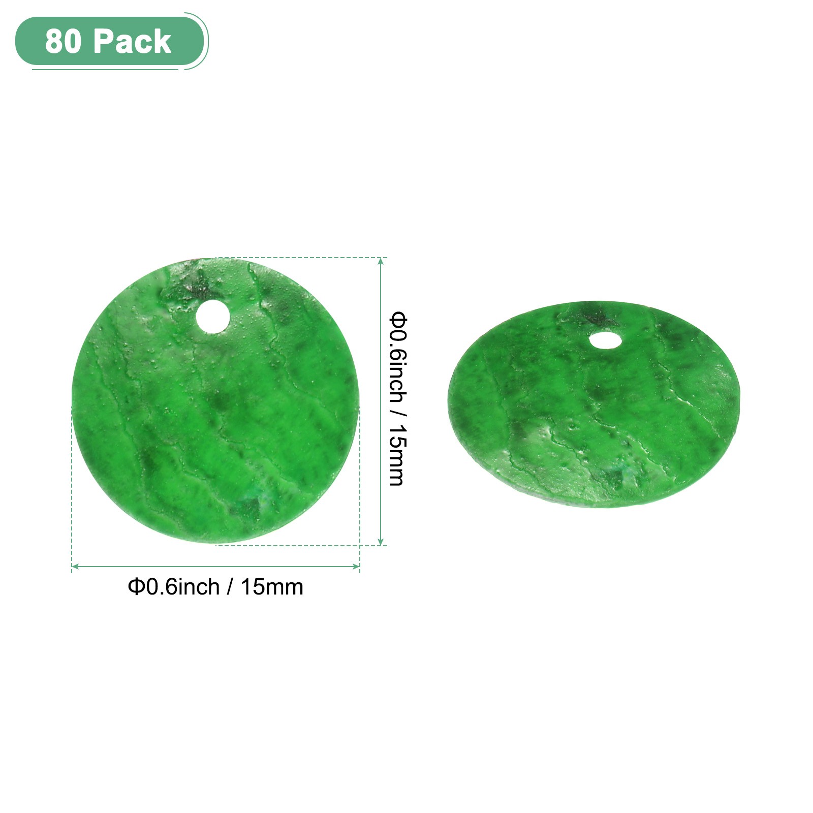 80-Pack Natural Flat Round Seashells, 15mm Drop Charm Beads Grass Green