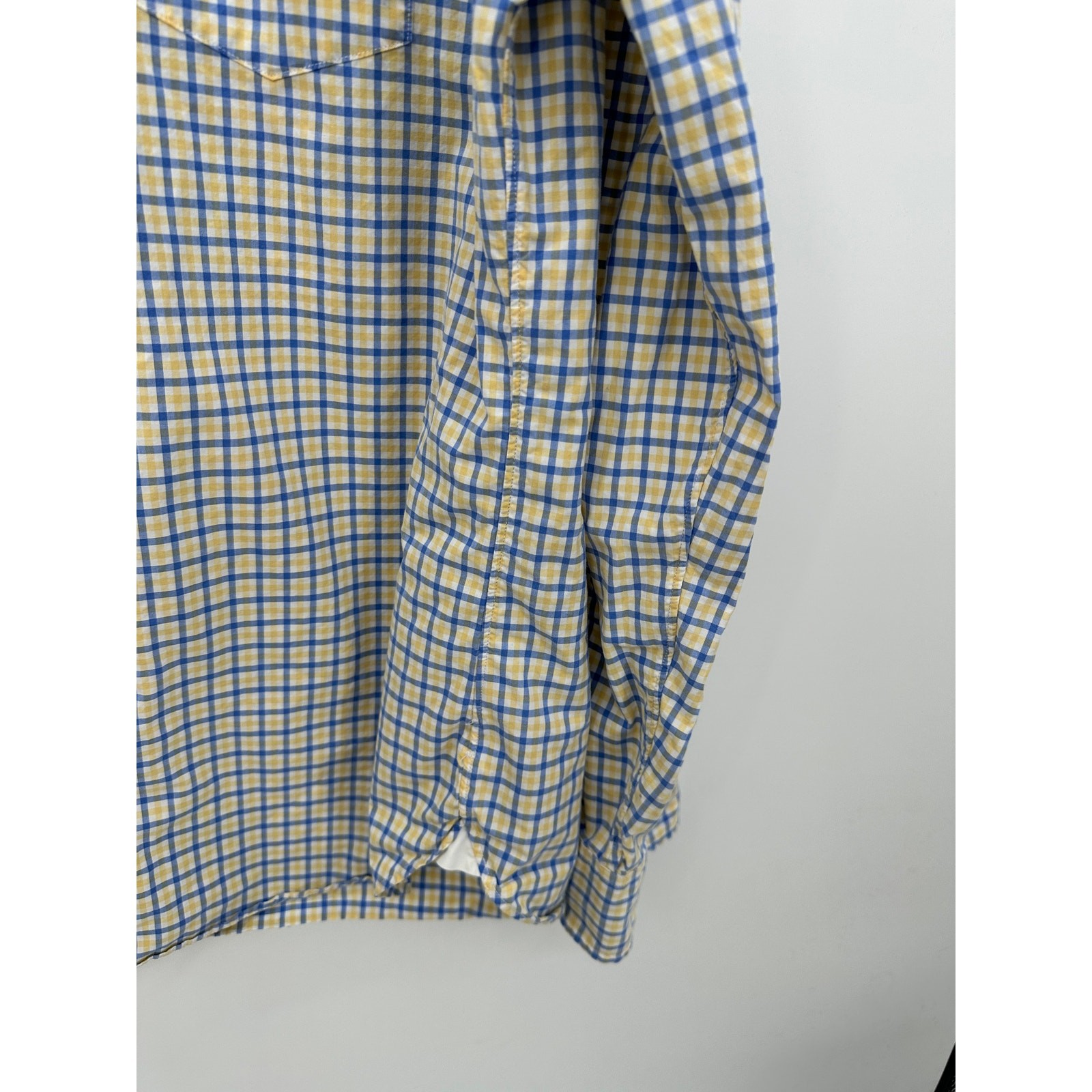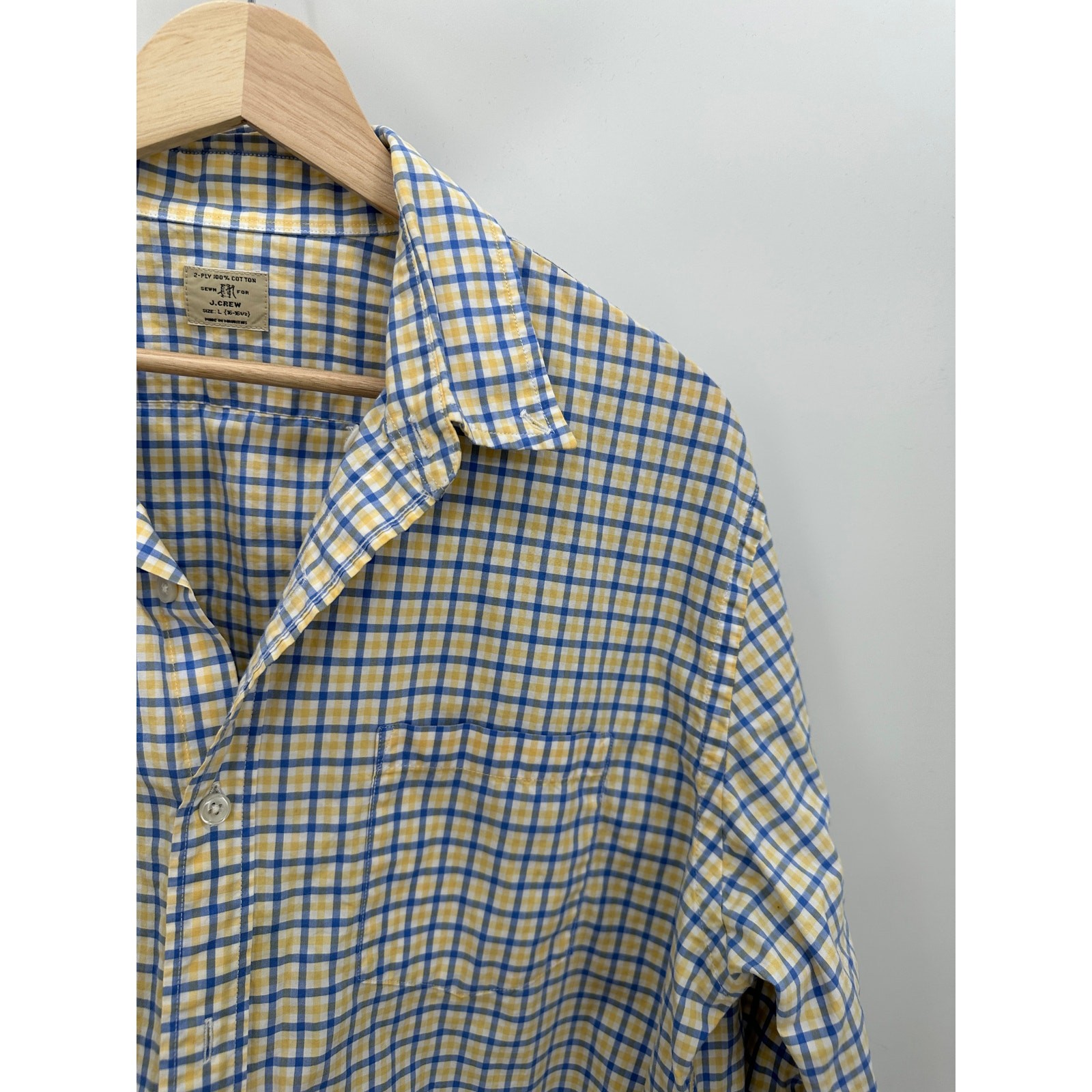 J. Crew Blue Yellow Checkered Button Down Shirt Collared Dress Mens Size Large