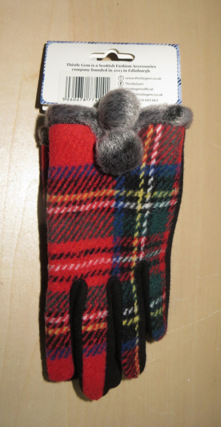 Thistle Gem Tartan Plaid Girls Gloves Pom Pom accents fits 2-4 years