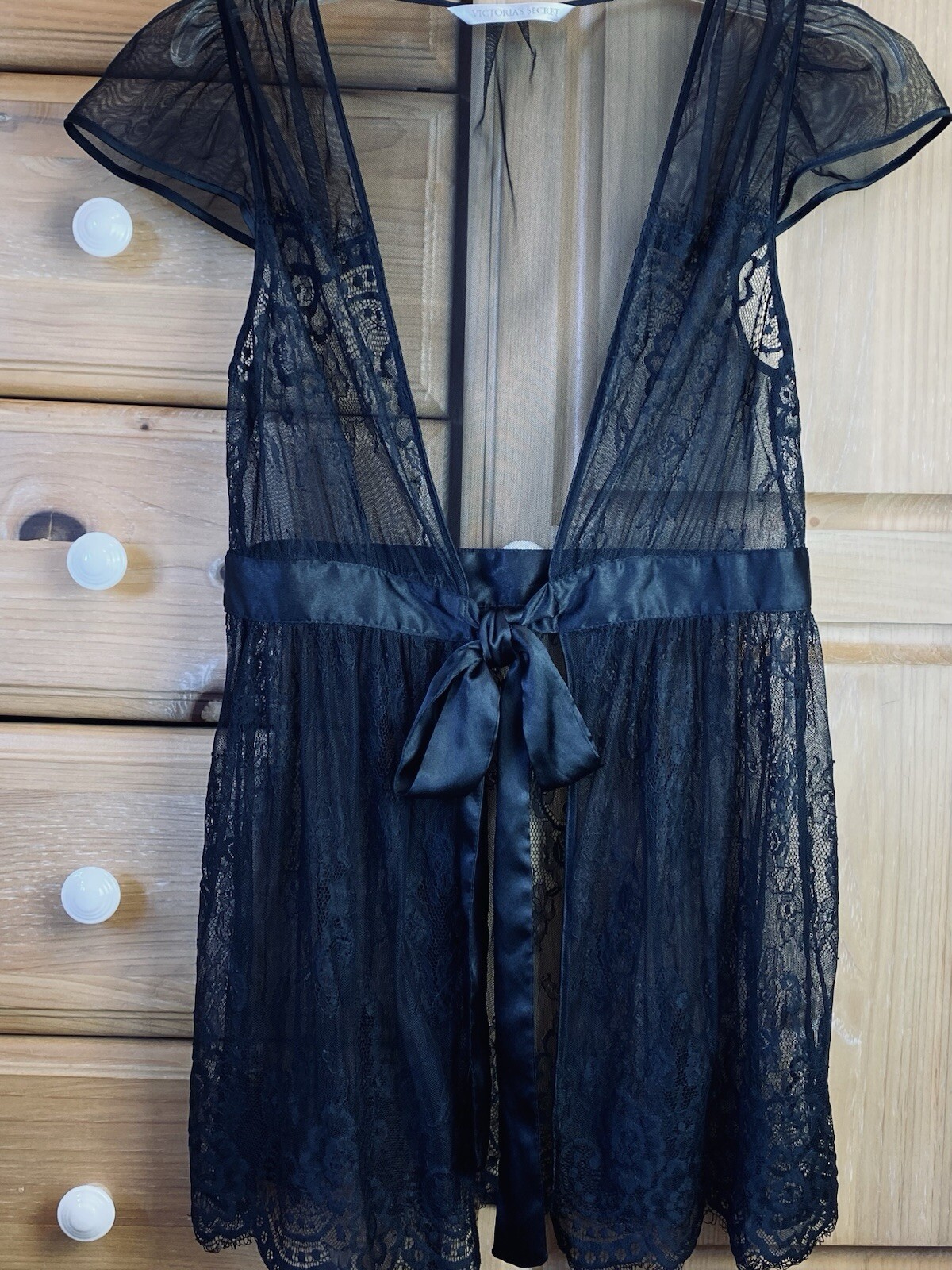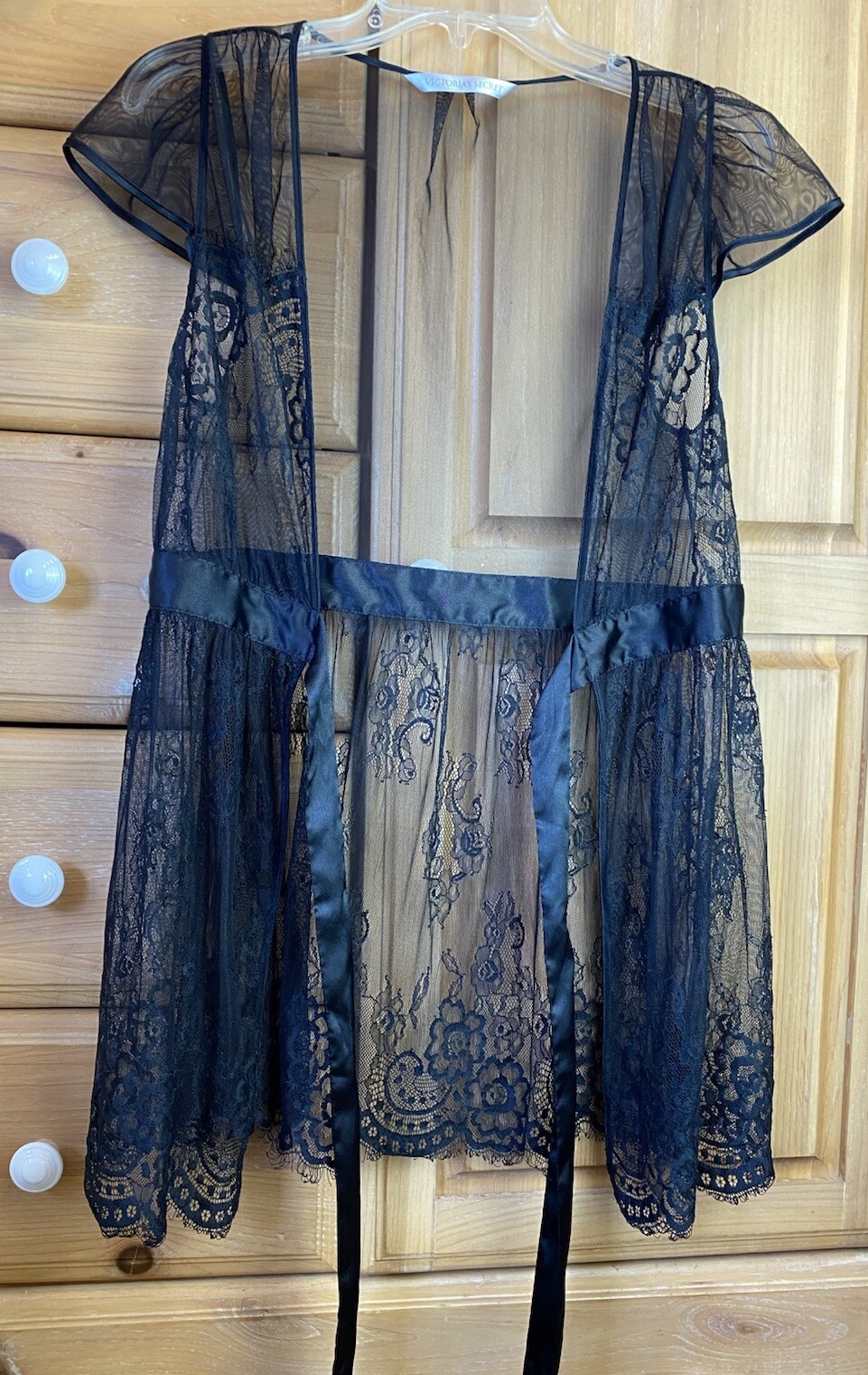 как выглядит Victorias Secret Vintage Romantic Black Lace Robe- Beautiful Boho Lace Top фото