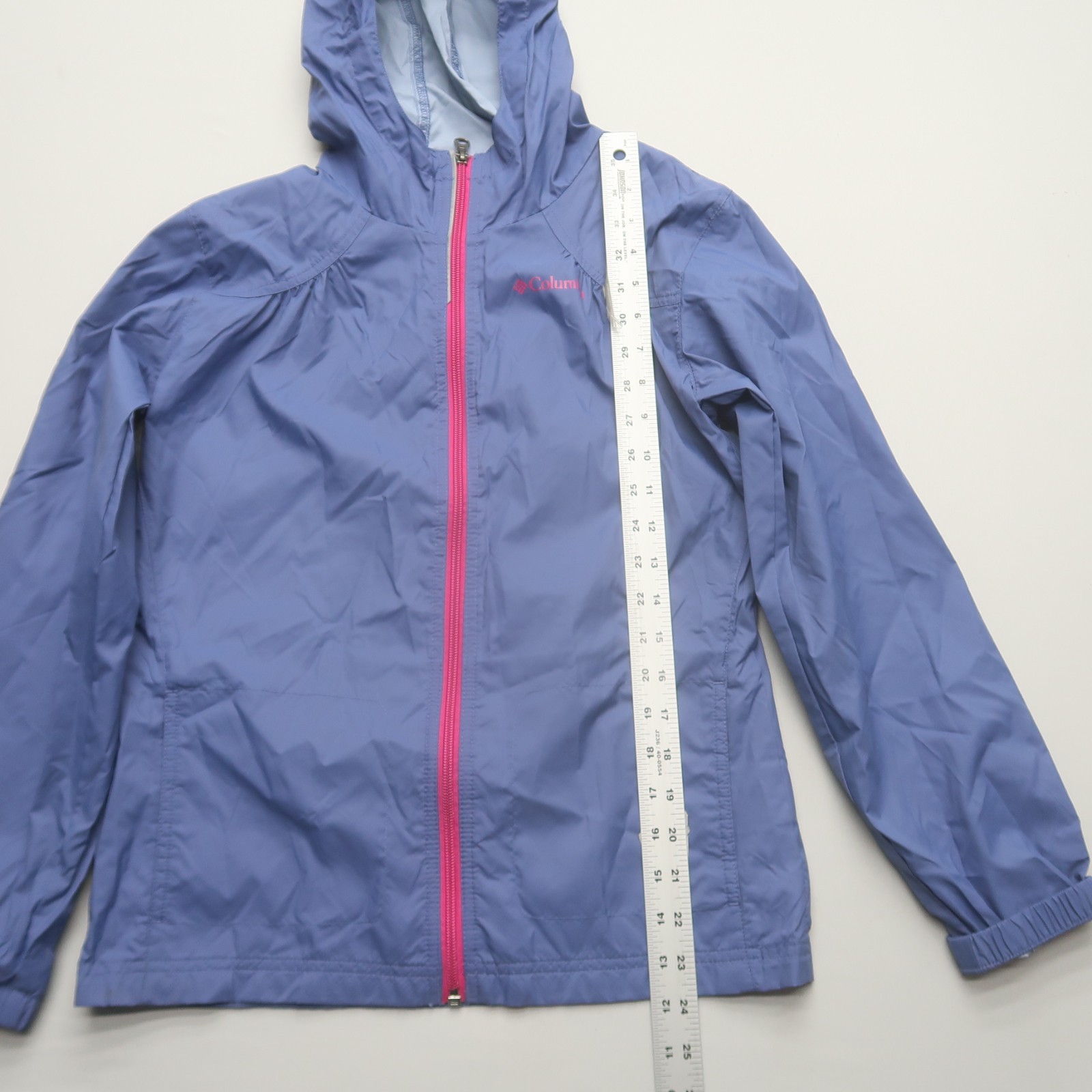 как выглядит Columbia Girls Youth Windbreaker Jacket Size Large 14-16 Purple Hooded Full Zip фото