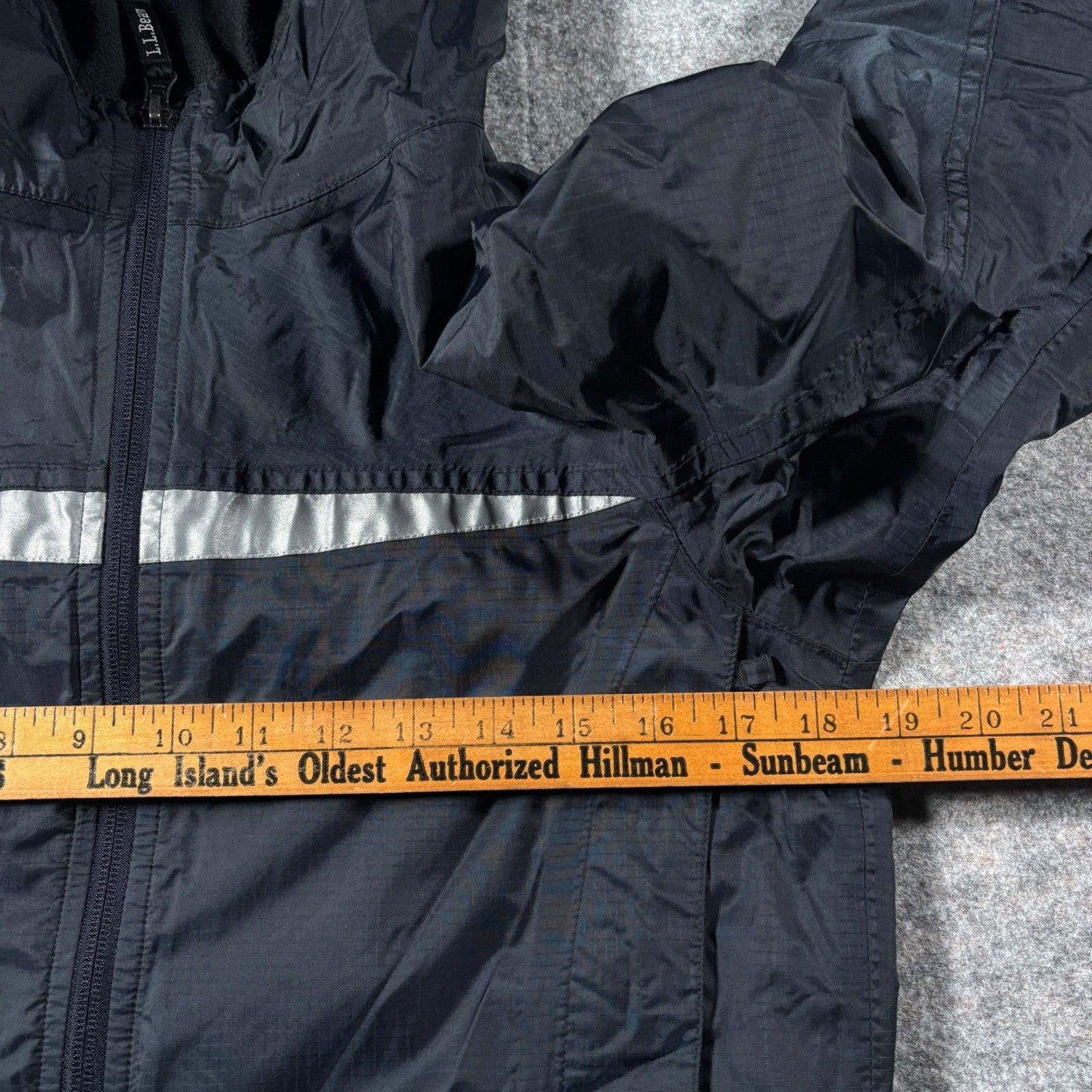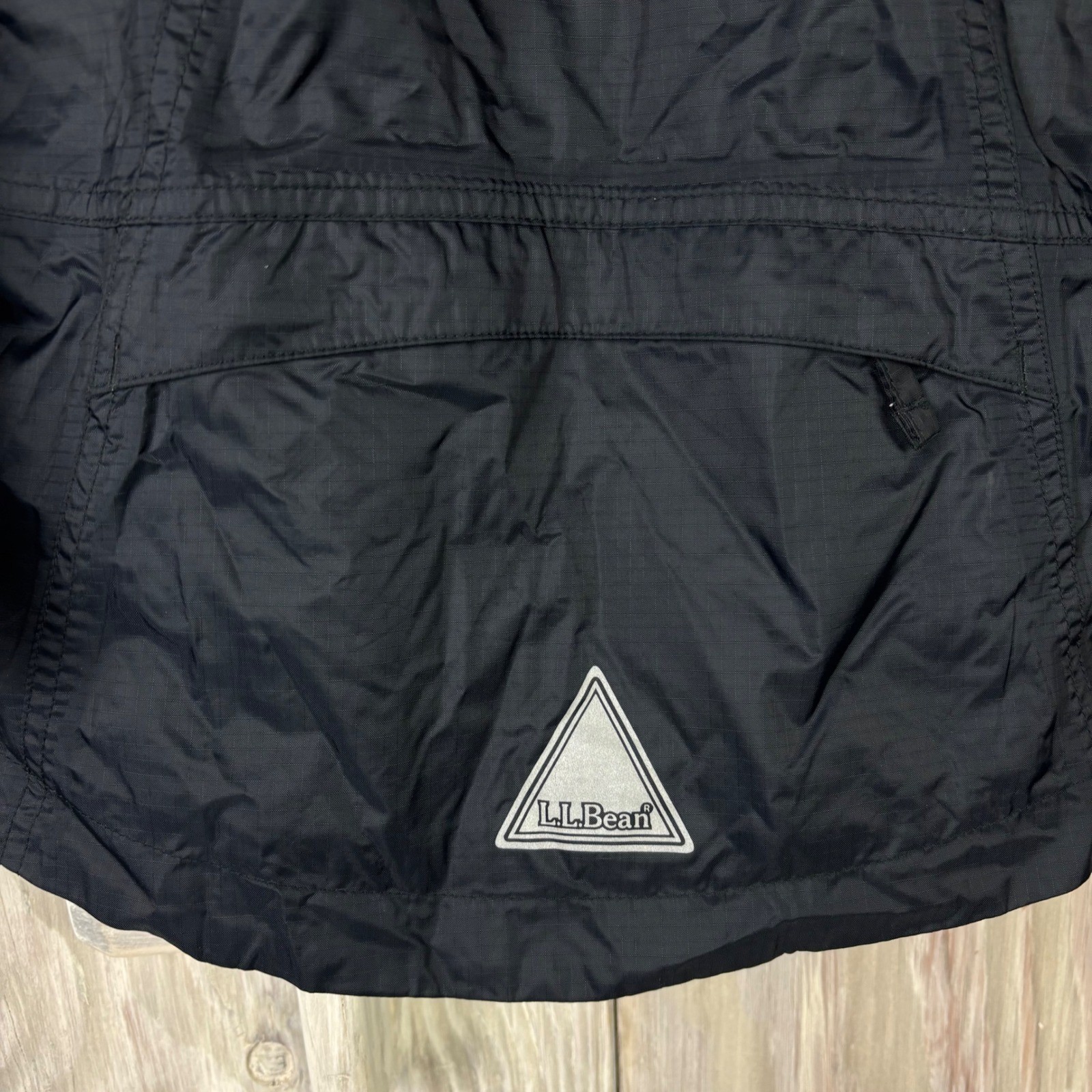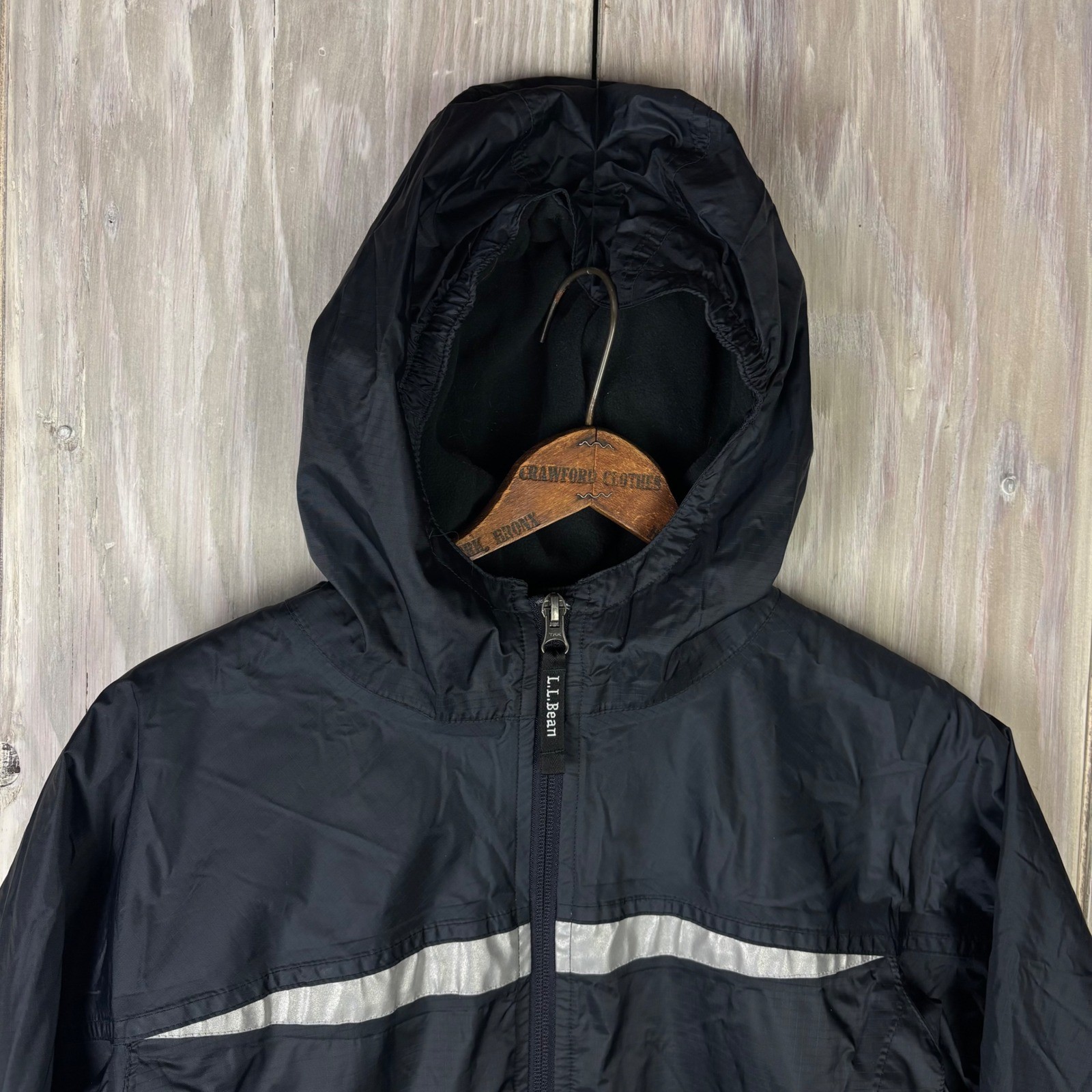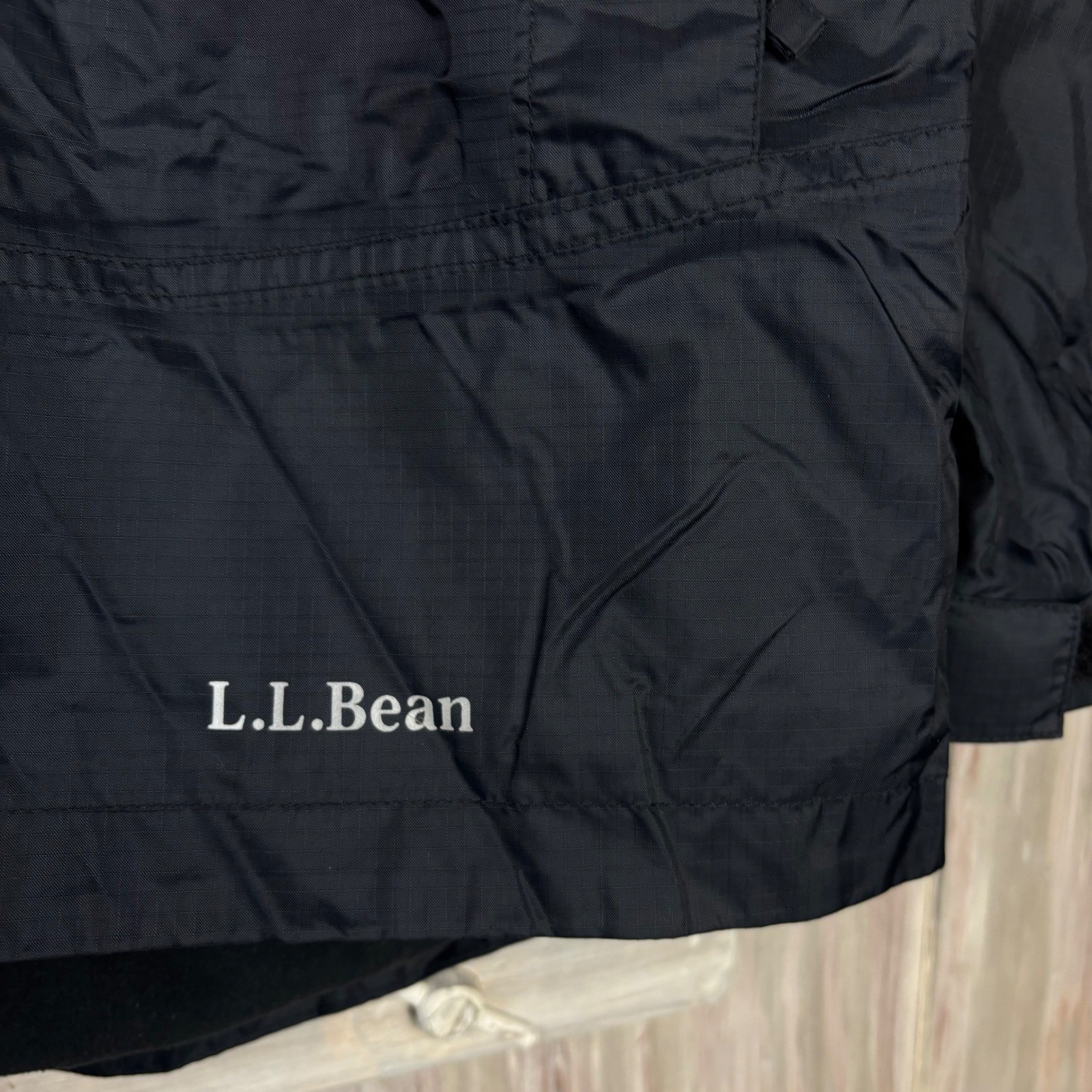 как выглядит L.L. Bean Black Hooded Trail Model Jacket Reflective Stripe Kids M 10-12 248055 фото