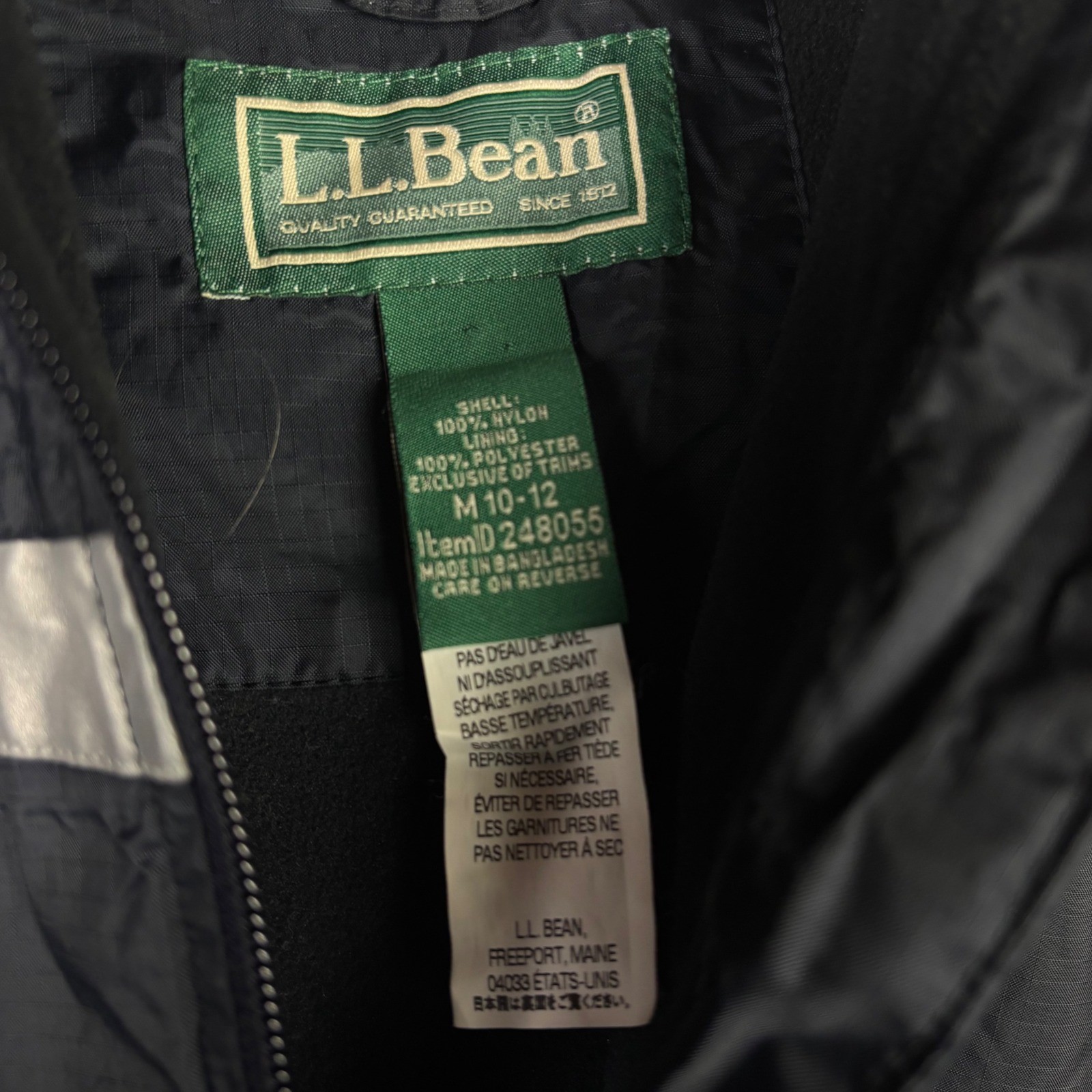 L.L. Bean Black Hooded Trail Model Jacket Reflective Stripe Kids M 10-12 248055