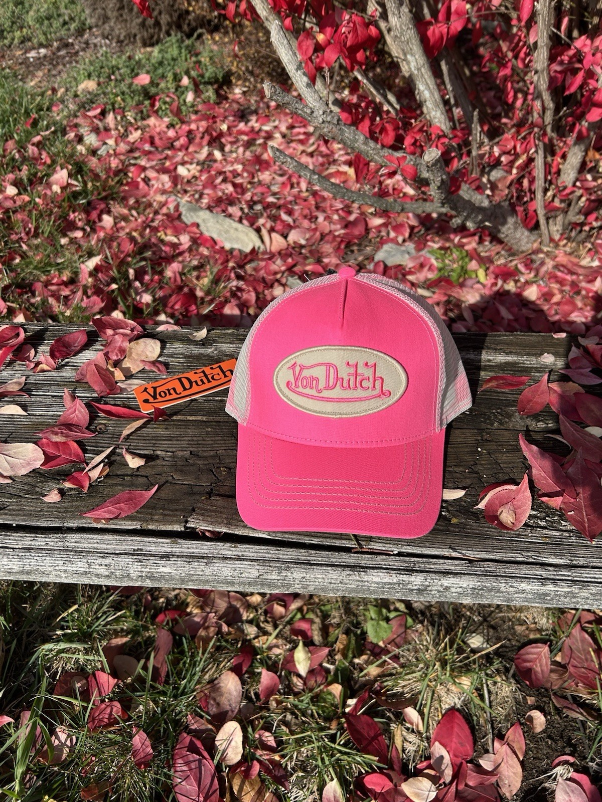 как выглядит VON DUTCH Classic Pink And Gray Trucker Cap    HOT PINK фото