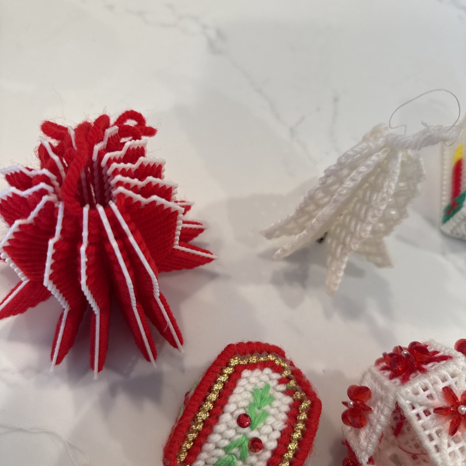 9 Piece Vintage Needlepoint Canvas Ornaments Bell Candle Handmade Retro MCM