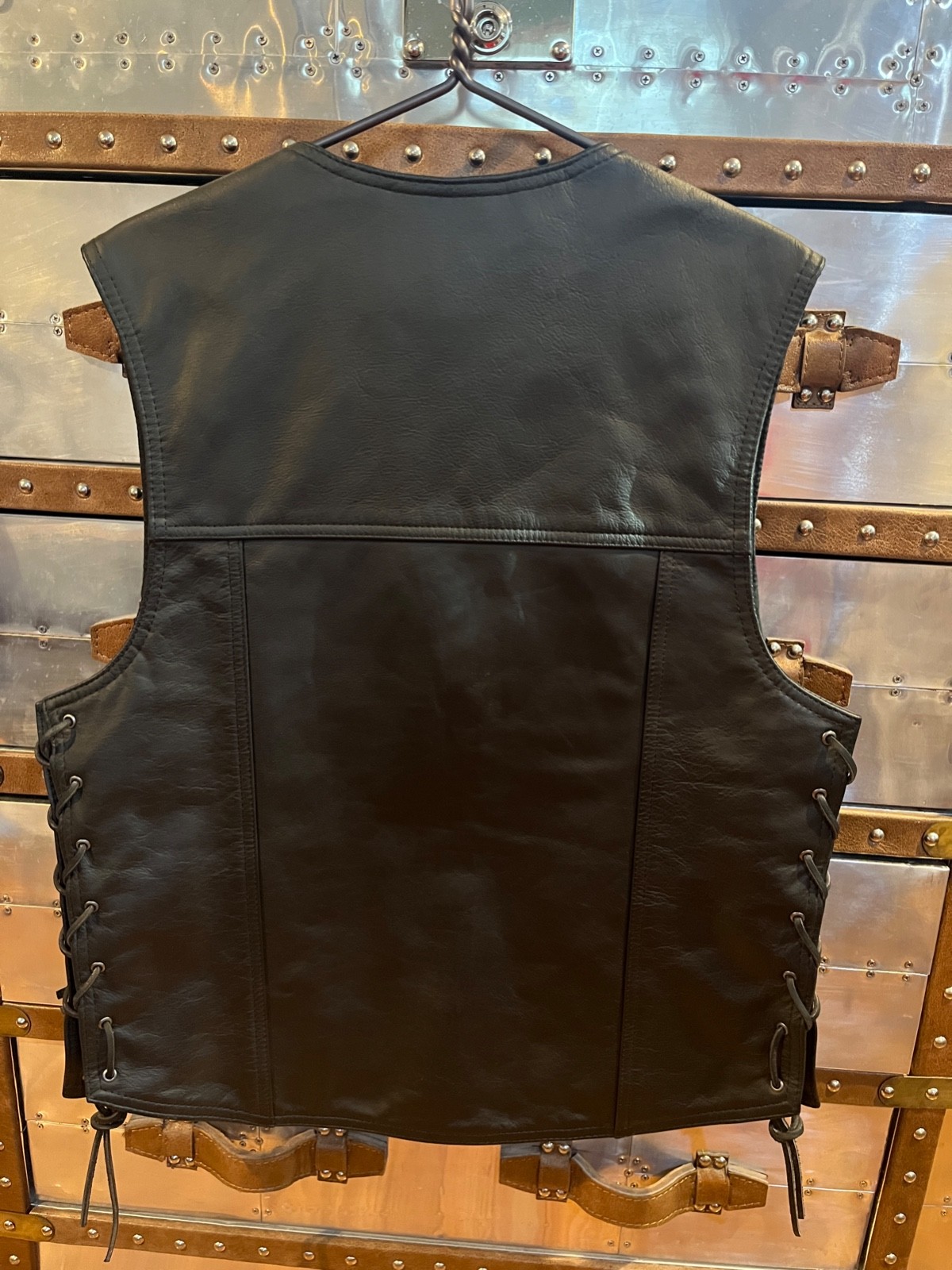Harley Davidson Men's PISTON II Thick Black Leather Motorcycle Vest MEDIUM