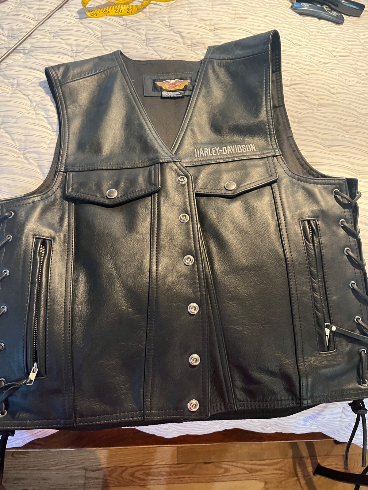 как выглядит Harley Davidson Mens PISTON II Thick Black Leather Motorcycle Vest MEDIUM фото
