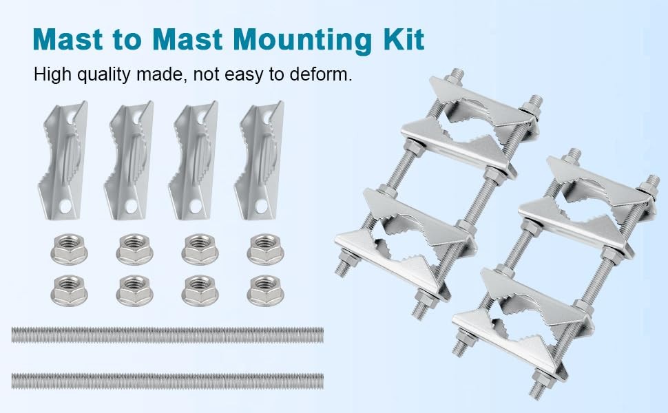 Double Antenna Mast Clamp, Mast to Mast Mount Bracket Kit with V Jaw Blocks, ...