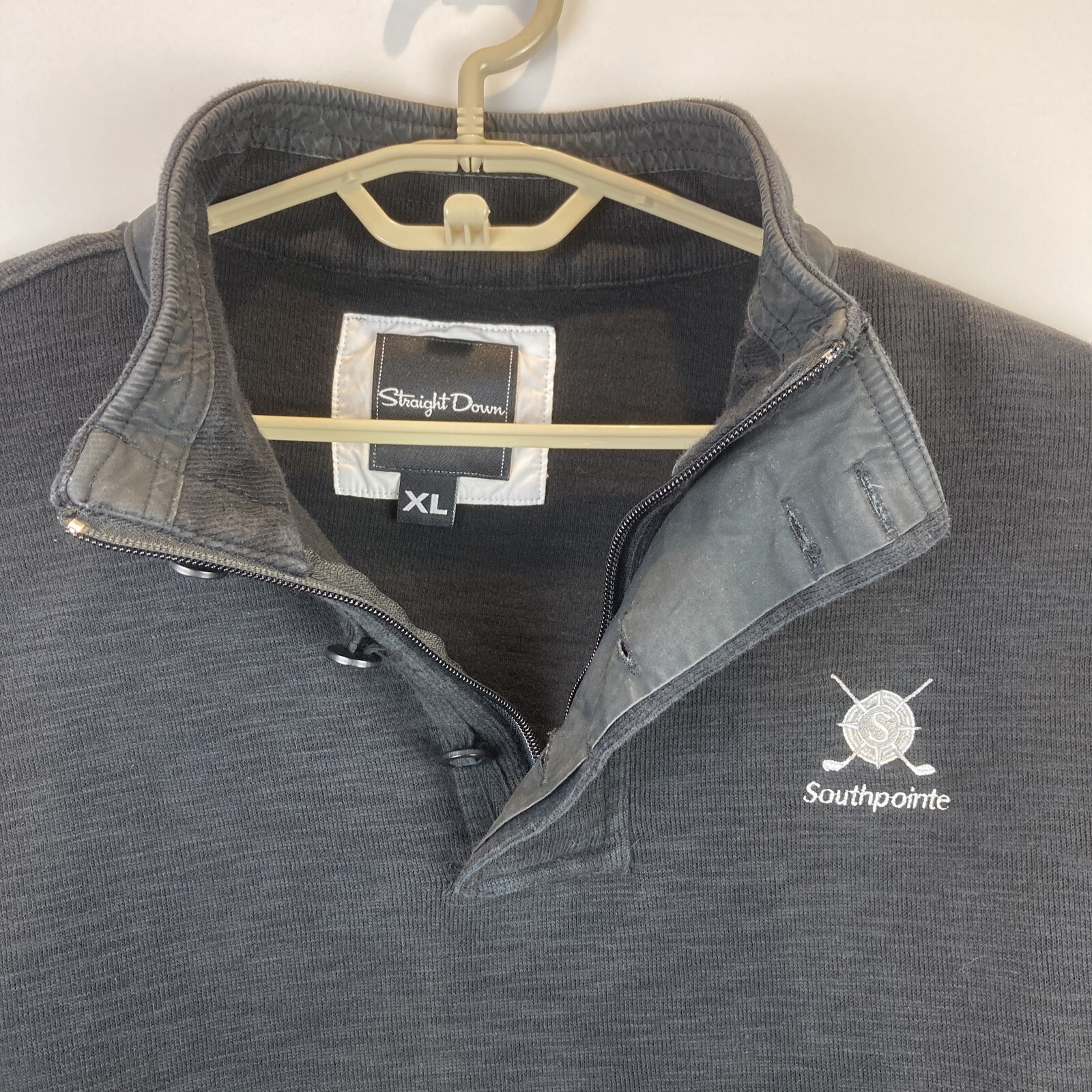 Straight Down Golf Mens XL 1/4 Zip Button Henley Pullover Sweater Black Cotton