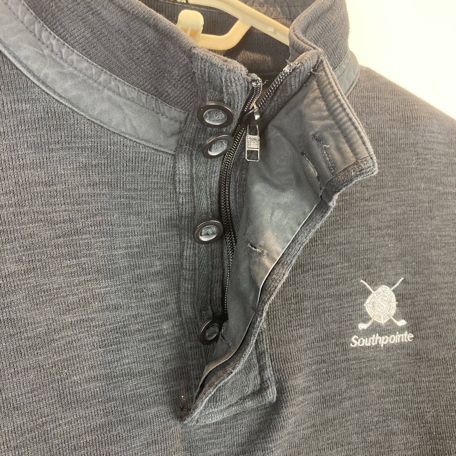 как выглядит Straight Down Golf Mens XL 1/4 Zip Button Henley Pullover Sweater Black Cotton фото