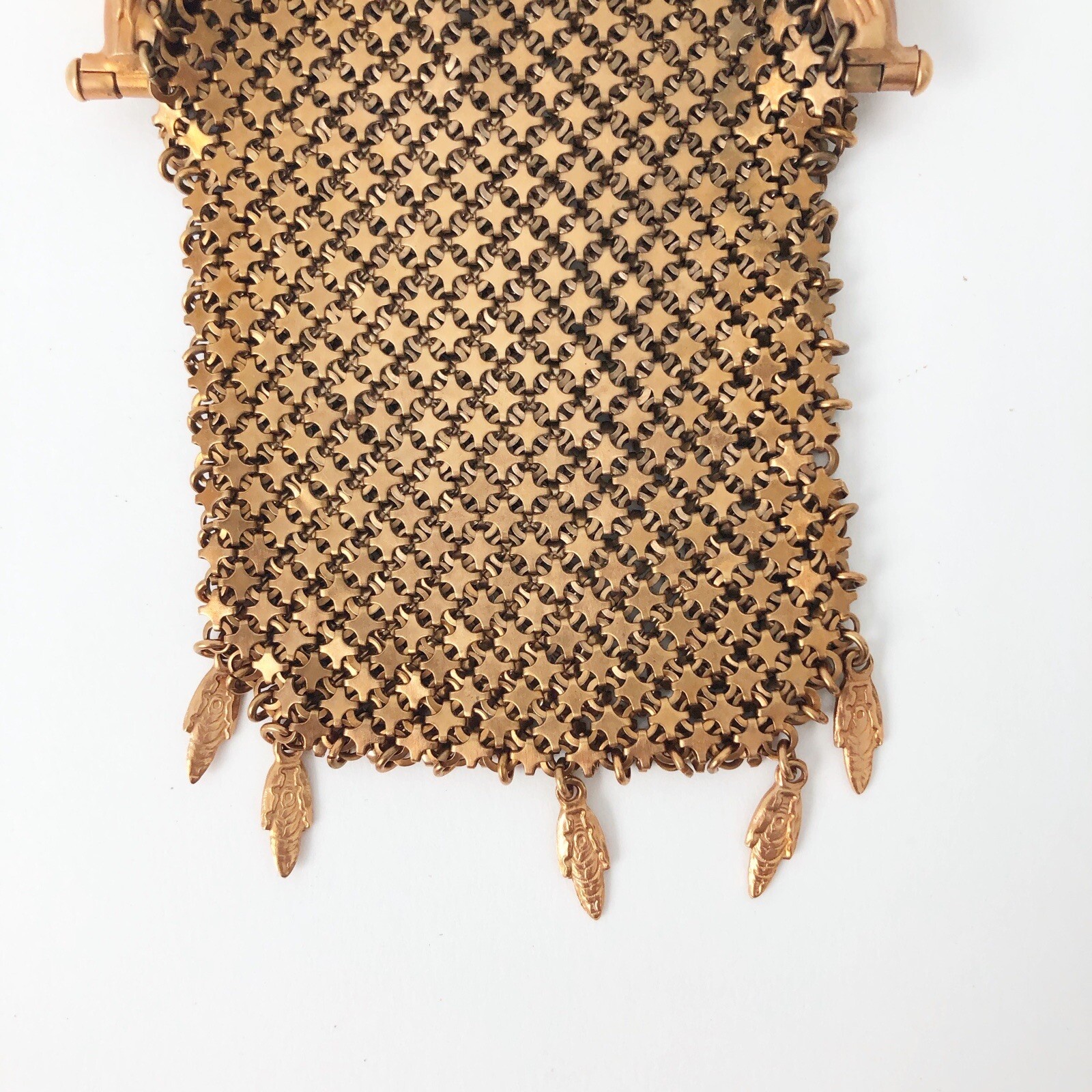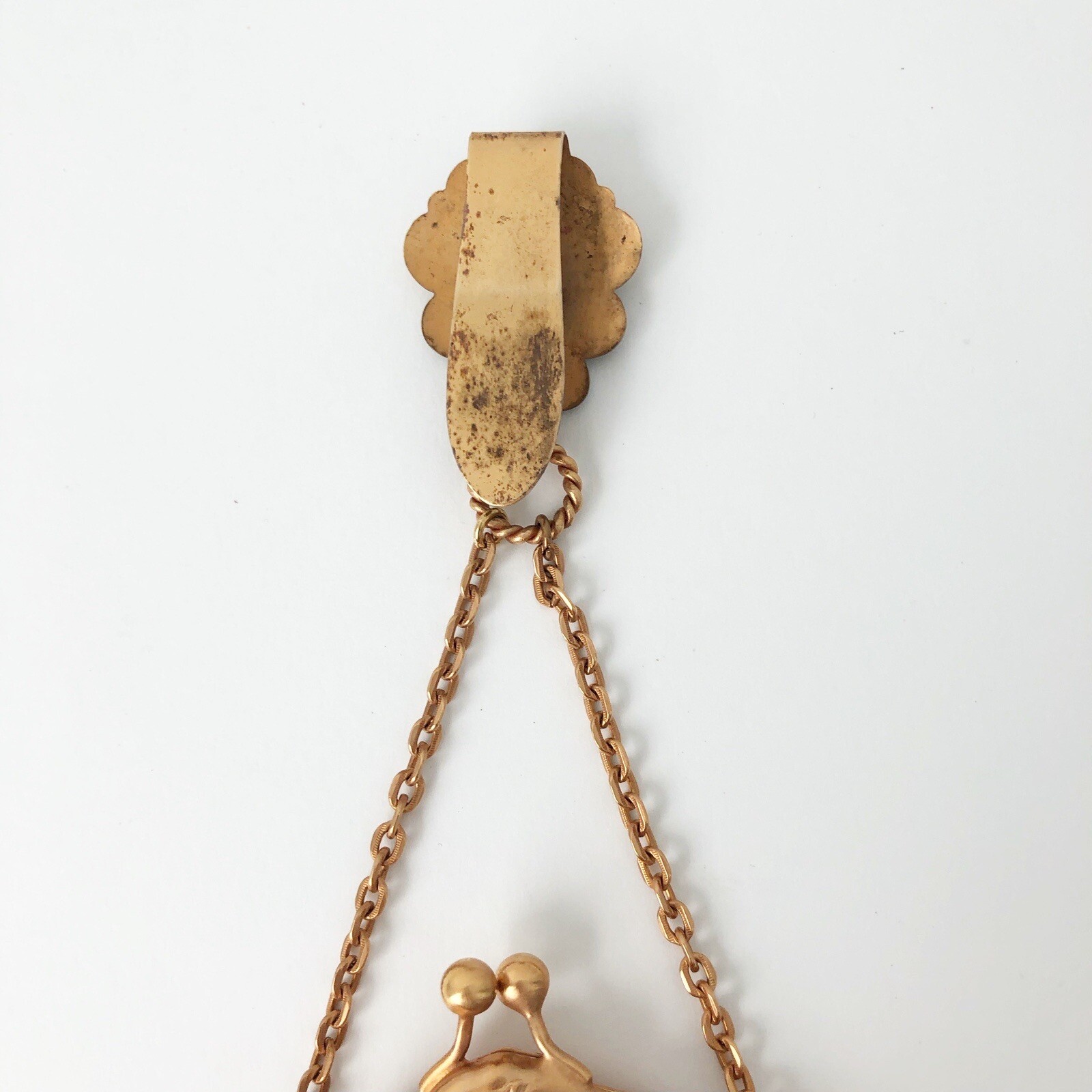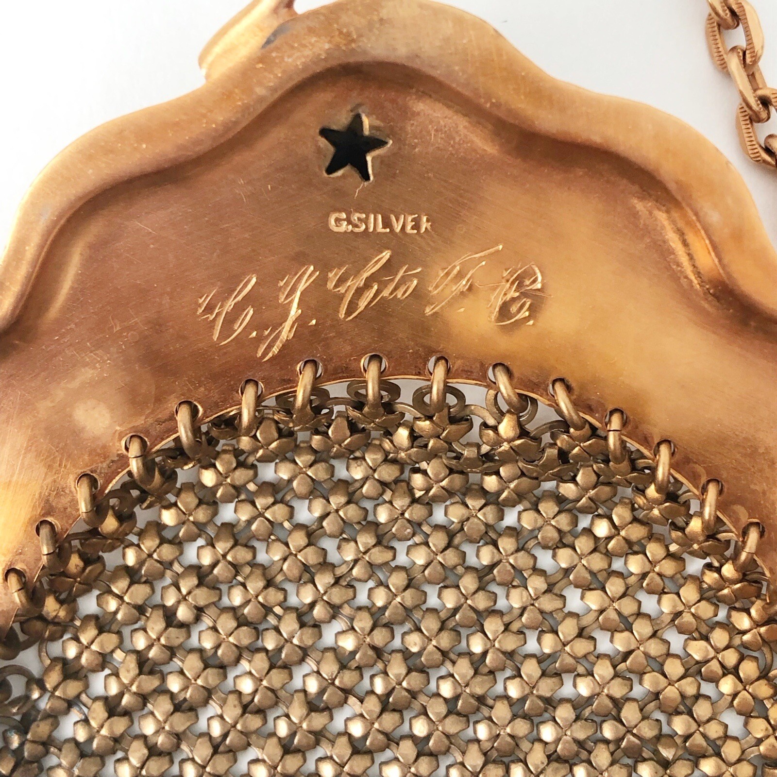 Antique Mesh Purse 1905 German Silver Art Nouveau Repousse Chatelaine Clip Gold