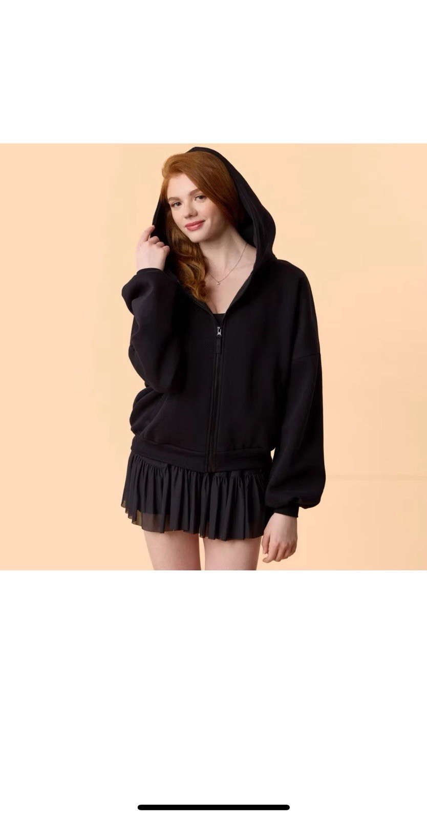 как выглядит Blogilates Womens Marshmallow Full Zip Hooded Sweatshirt - Black L фото