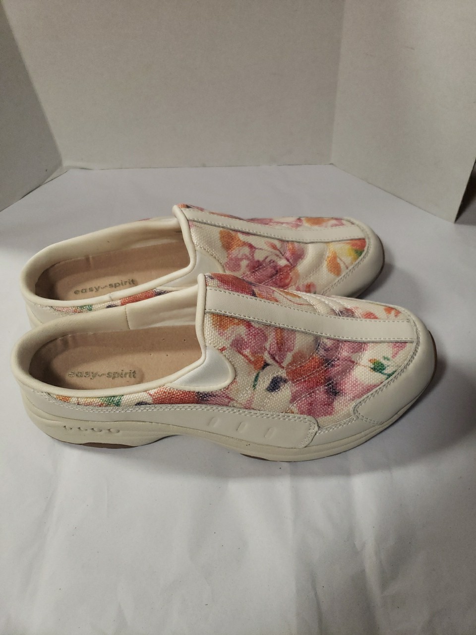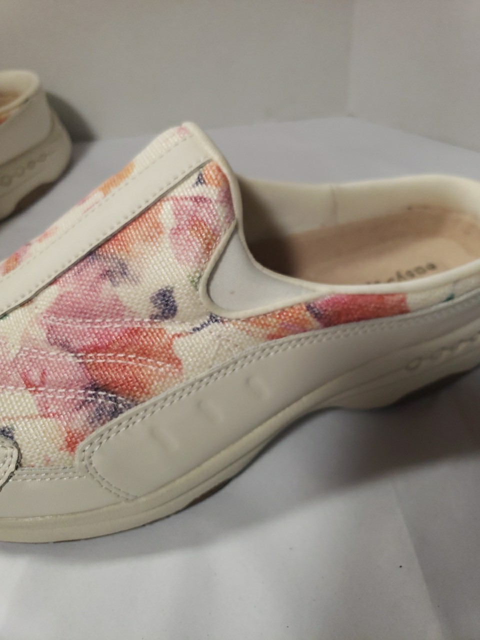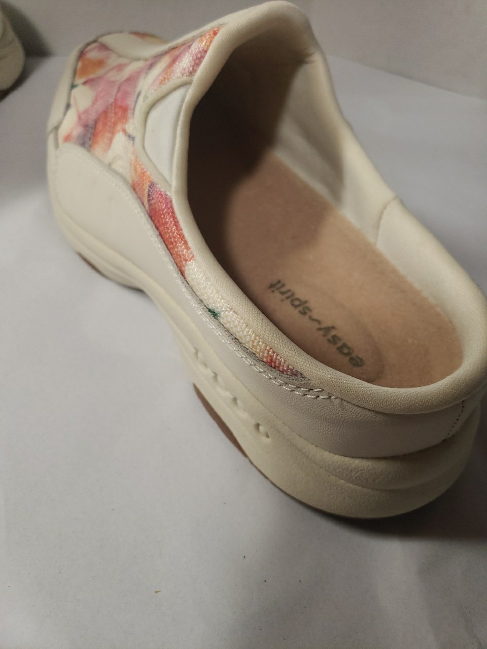 как выглядит Easy Spirit Womens TravelTime Walking Clogs Cream Color With Floral Print Sz 9W фото