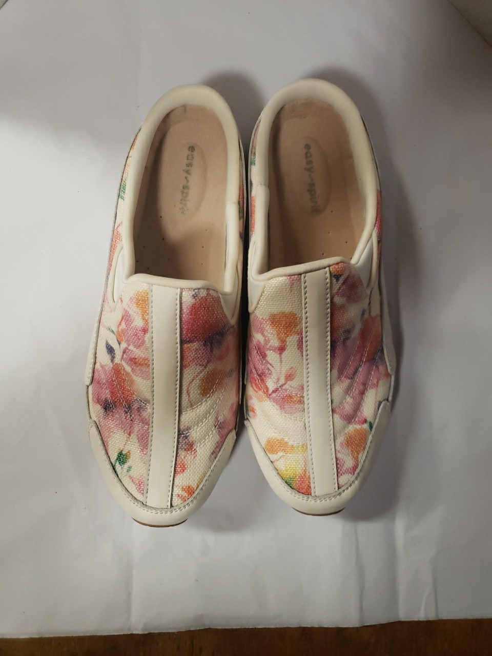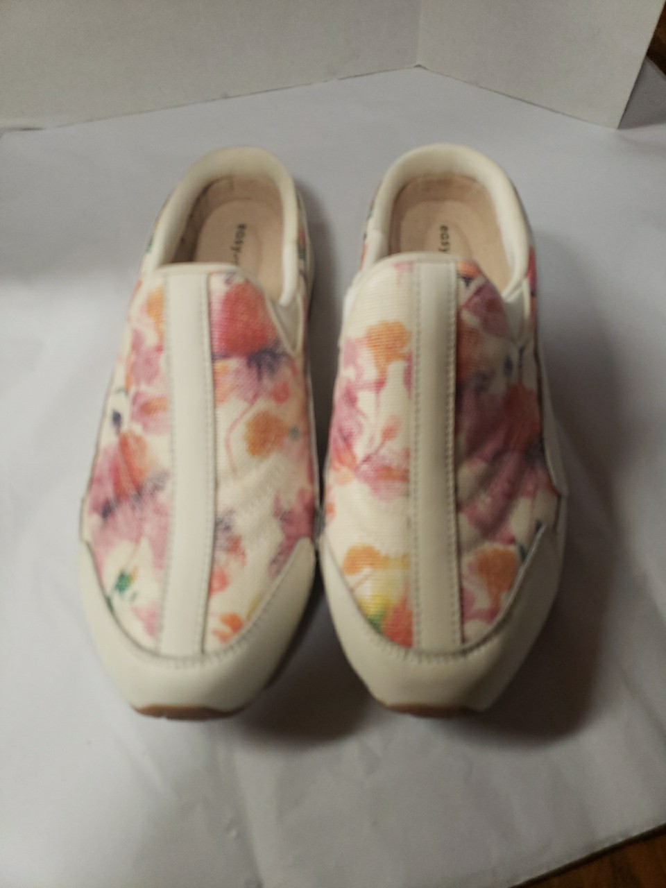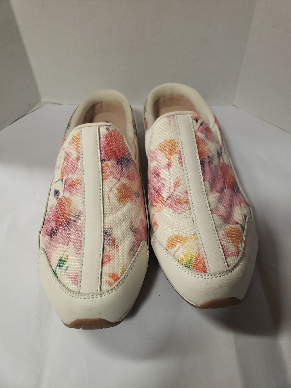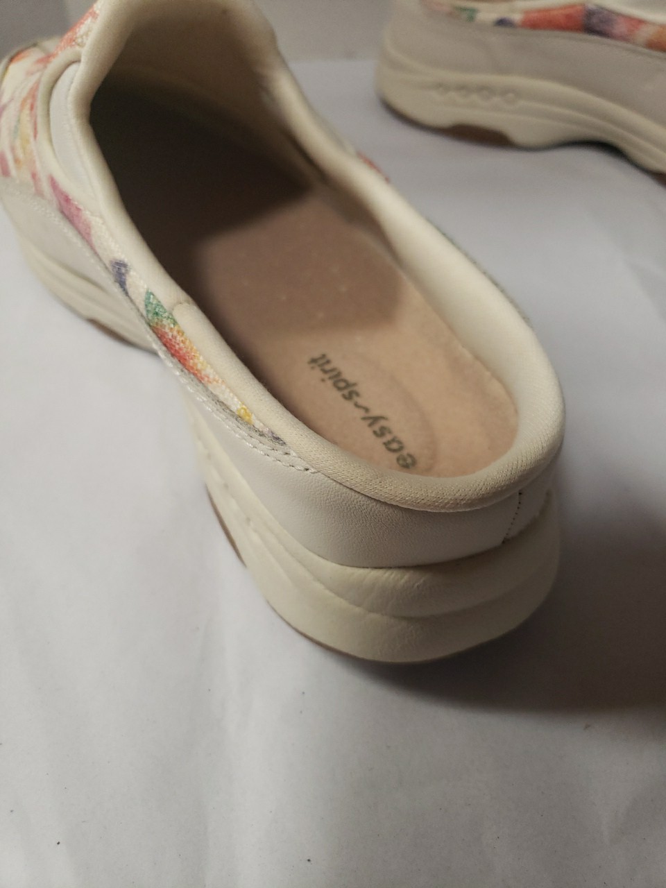 как выглядит Easy Spirit Womens TravelTime Walking Clogs Cream Color With Floral Print Sz 9W фото
