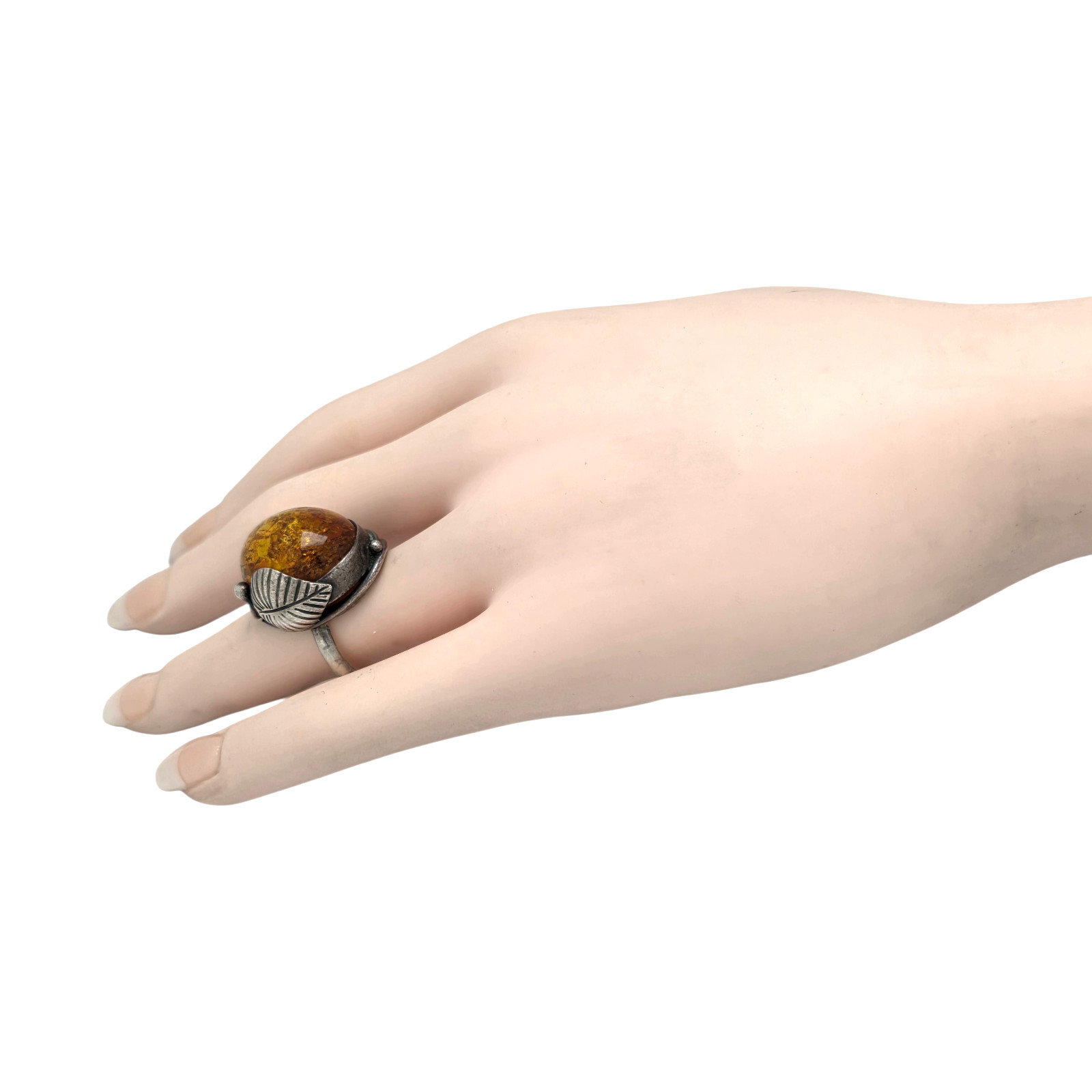 VINTAGE STERLING SILVER AMBER WITH LEAF STATEMENT SIZE 5.25 RING 9.2GR 1543